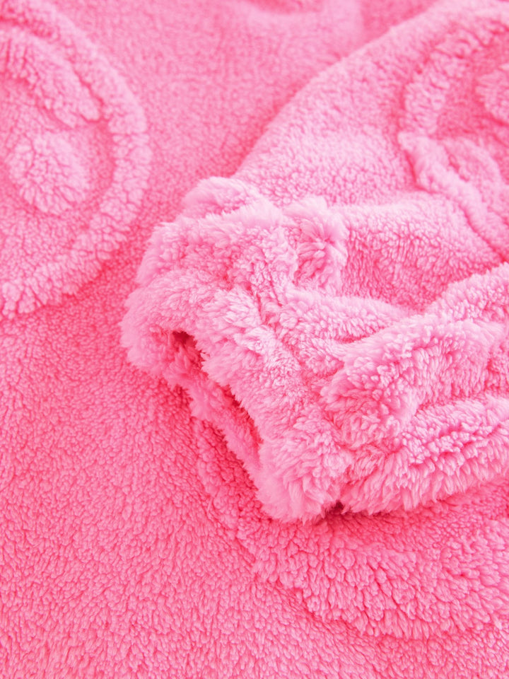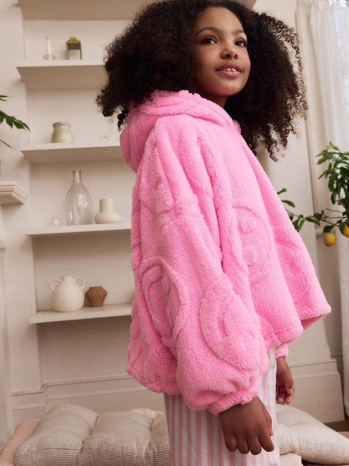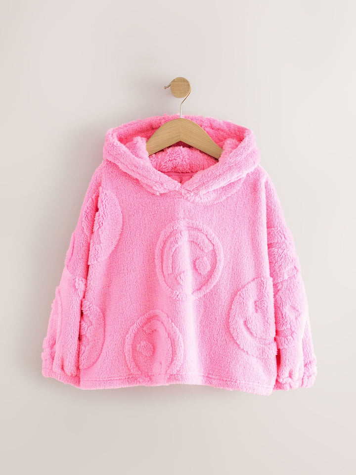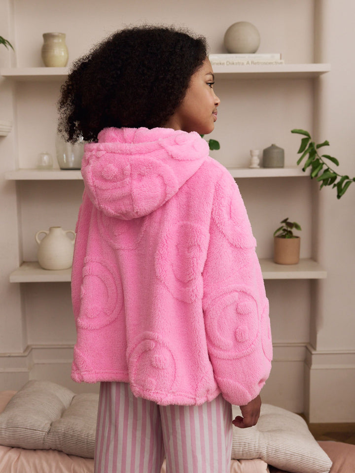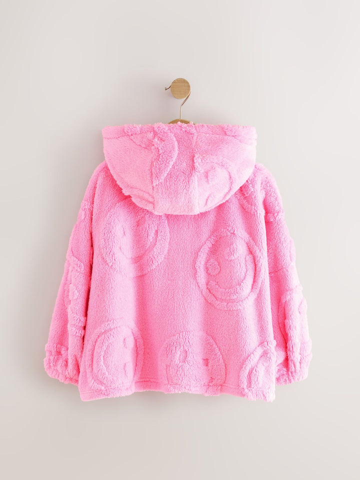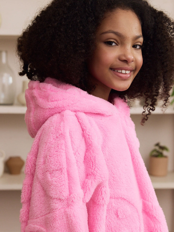Pink Happy Face Jacquard Fleece Cropped Hooded Blanket (3-16yrs)
