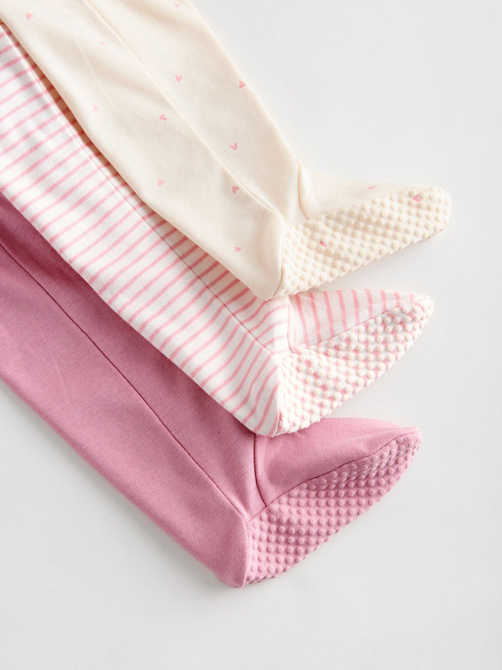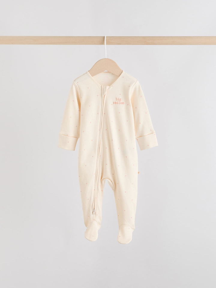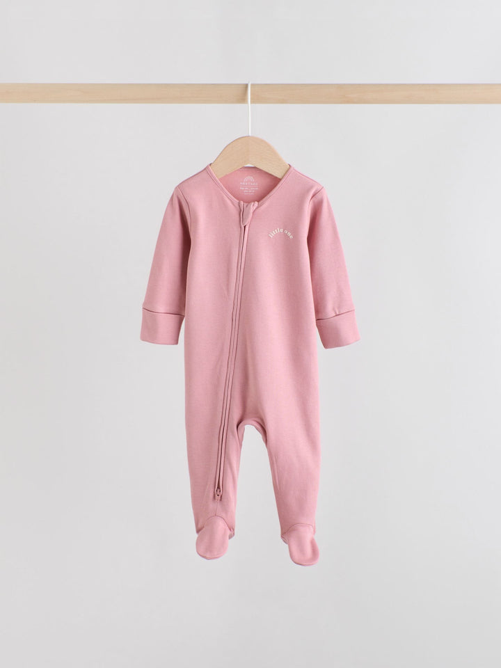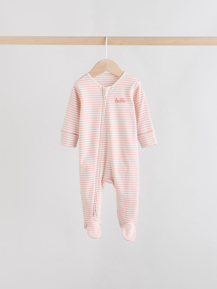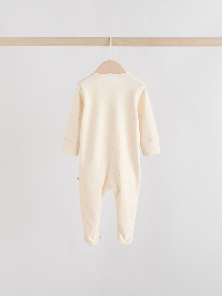 Pink Heart Two Way Zip Baby Sleepsuits 3 Pack (0-2yrs)