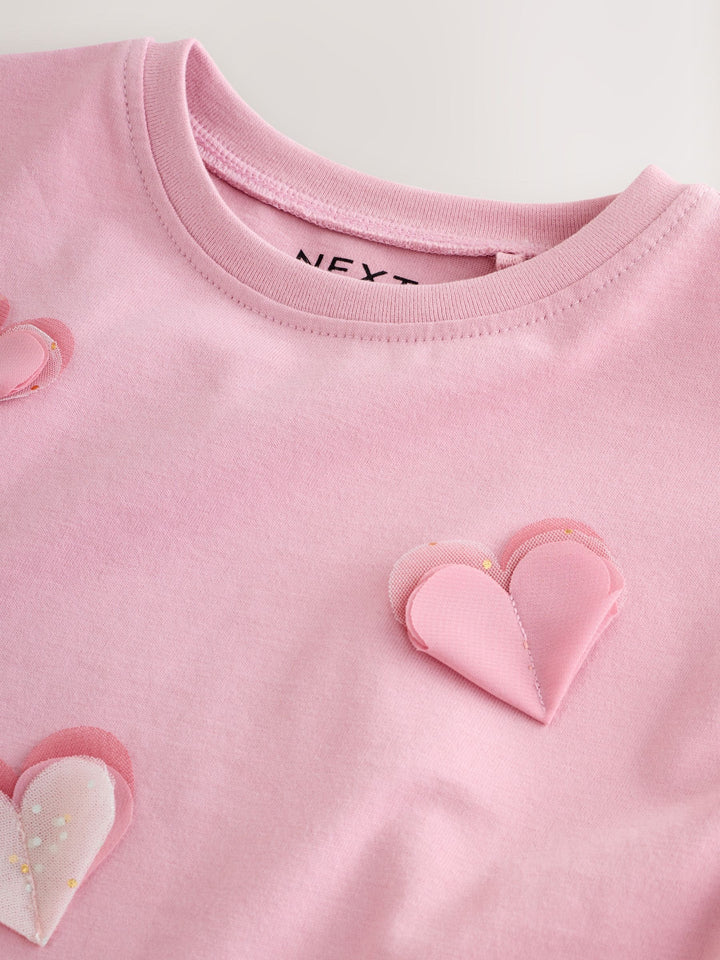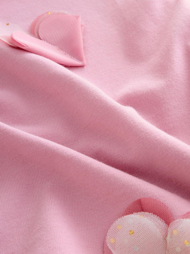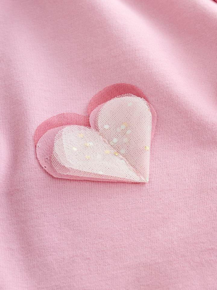 Pink Long Sleeve Mesh Heart Appliqué Top (3mths-7yrs)