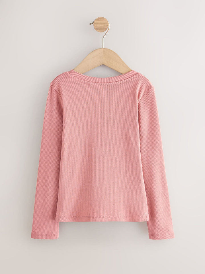 Pink Long Sleeve Ribbed Top (3-16yrs)