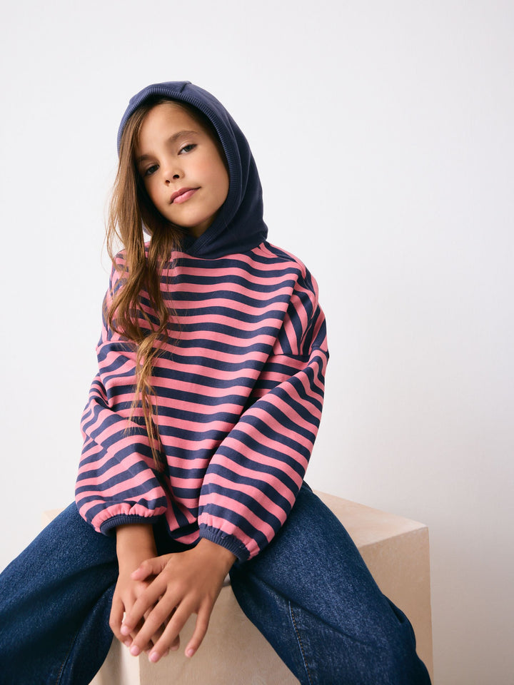 Pink/Navy Blue Stripe Hoodie (3-16yrs)
