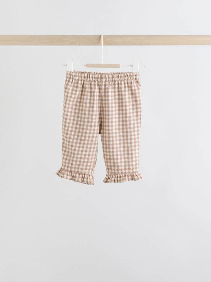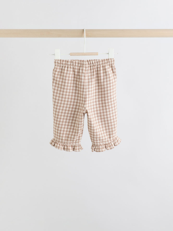 Pink/ Neutral Gingham Baby Long Sleeve Peplum Top and Trousers Set 2 Piece (0mths-2yrs)