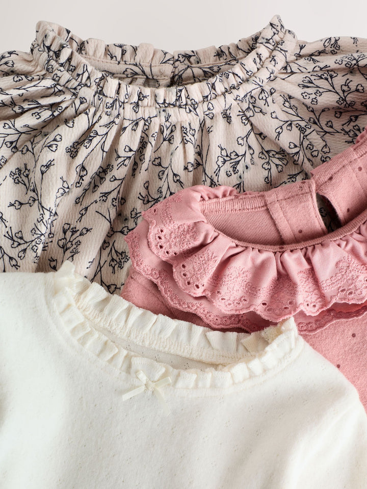 Pink/Neutral Long Sleeve Embroidered Tops (3mths-7yrs)