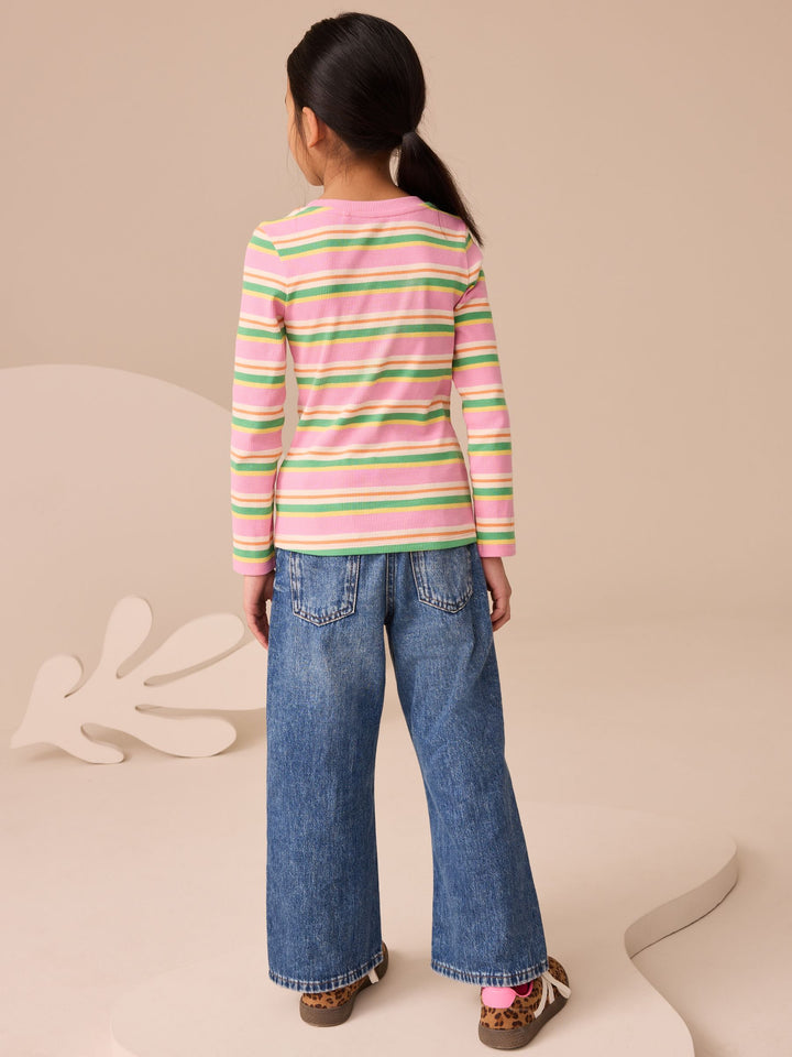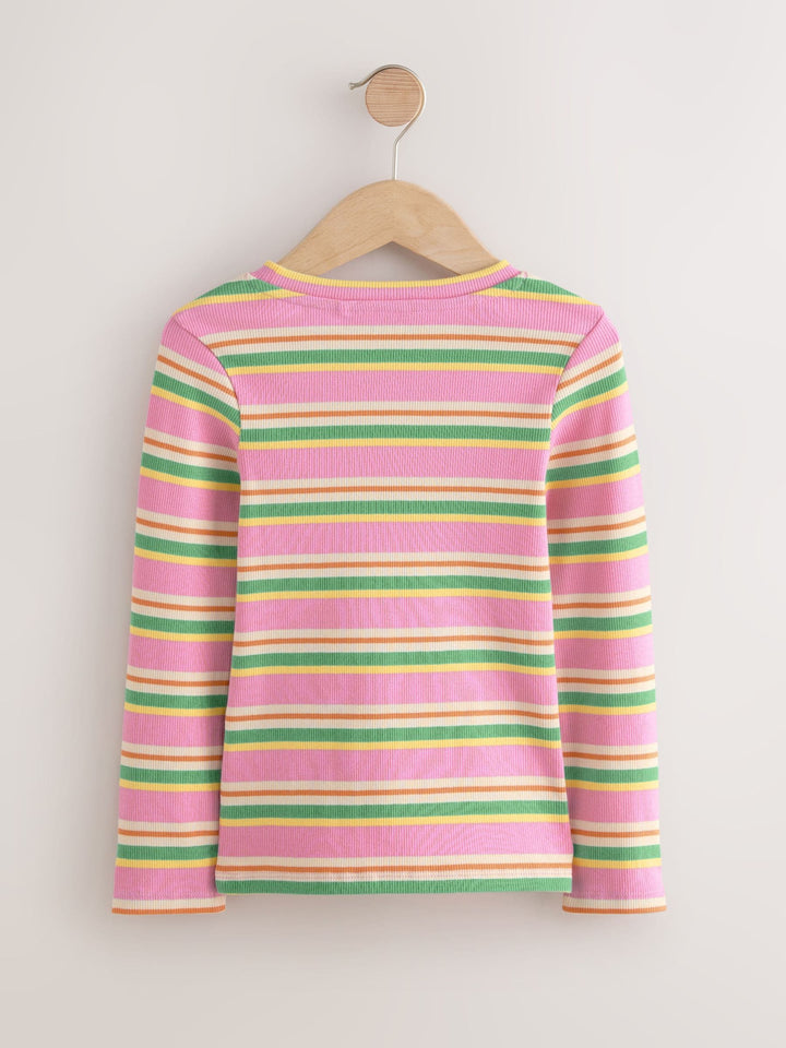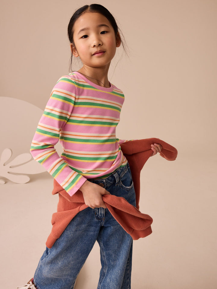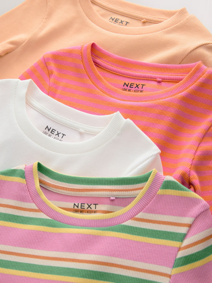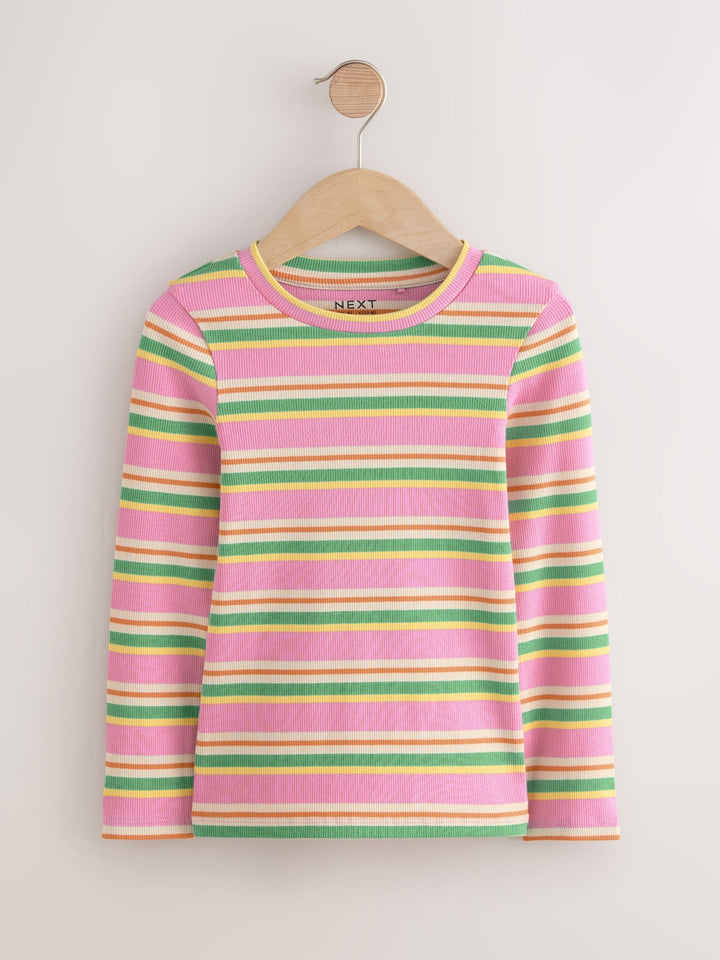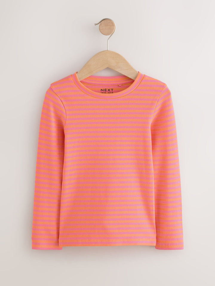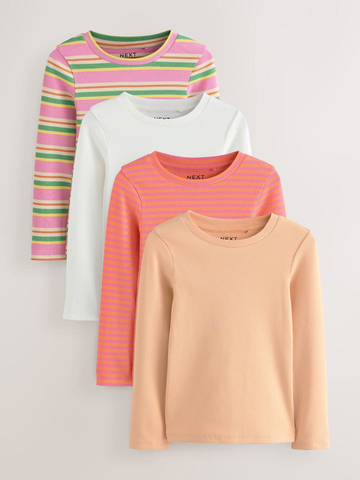 Pink/Orange Long Sleeve Ribbed T-Shirts 4 Pack (3-16yrs)