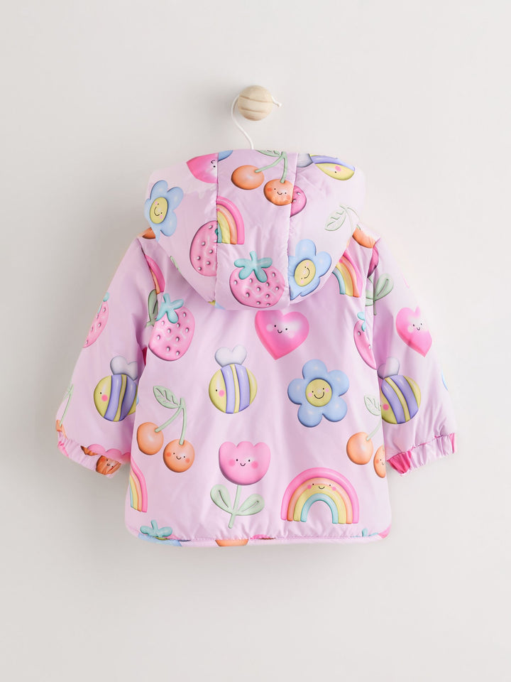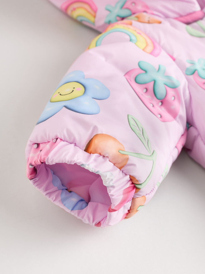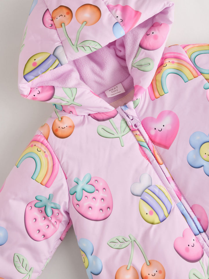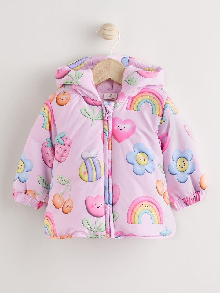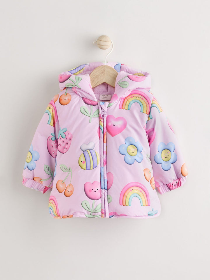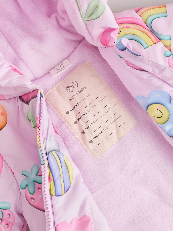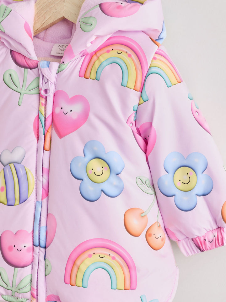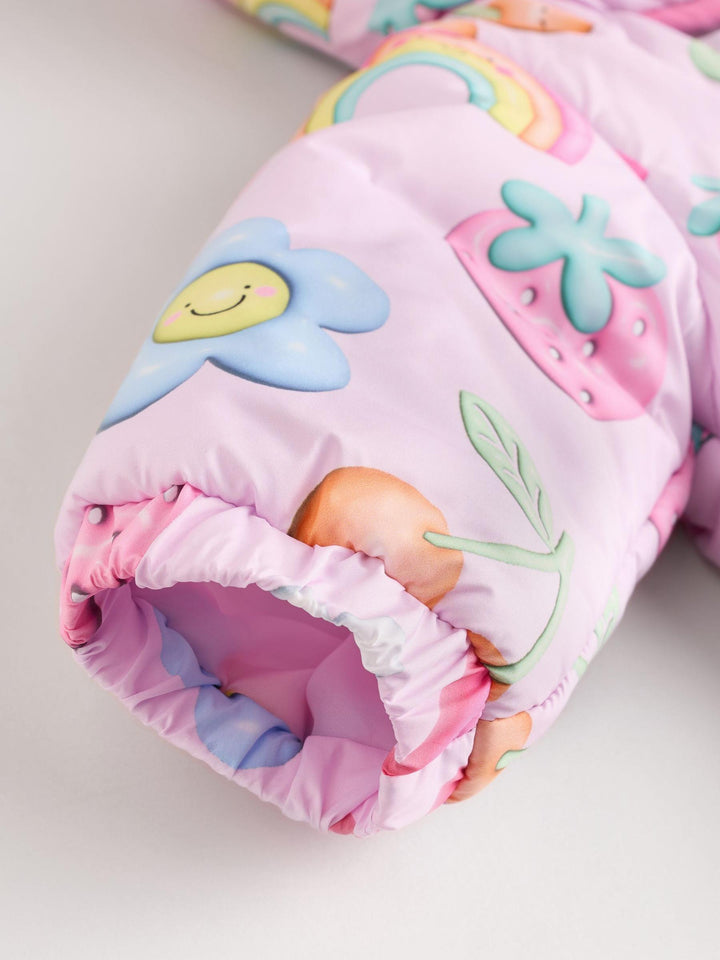 Keep your little one cosy and add a burst of colour to their outfit, with this warm pink puffer coat, featuring a zip fastening, a set-in hood and a fleece lining, decorated with a cute all-over character print. Regular fit Puffer design All-over print Fleece lining Wrist cuffs Set-in hood Machine washable. Main 100% Recycled polyester. Lining 100% Recycled polyester. Wadding 100% Recycled polyester. Country of Origin: China Warning: Keep away from fire and flames.