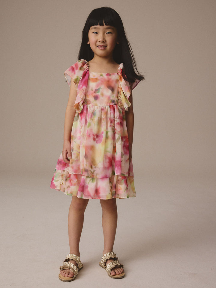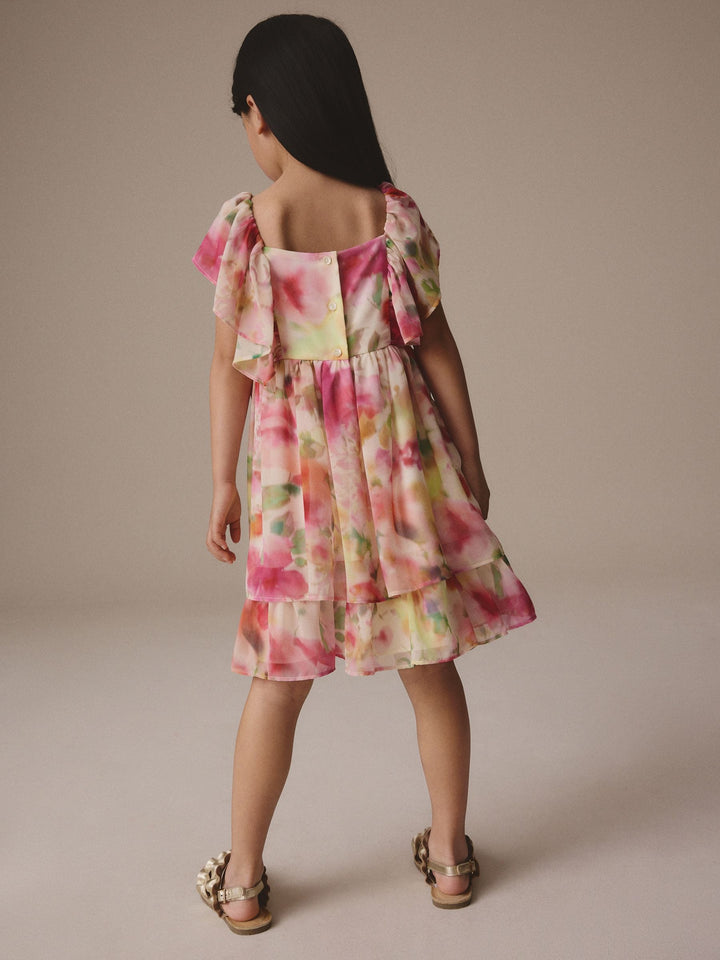 Cool and comfortable, this printed chiffon dress is designed with a tiered skirt and angel sleeves to create a pretty silhouette. Ideal for summer styling, pair with sandals for a cute look. Lightweight fabric Tiered skirt Angel sleeves Button back fastening Main 100% Polyester. Lining 100% Polyester. Country of Origin: Morocco