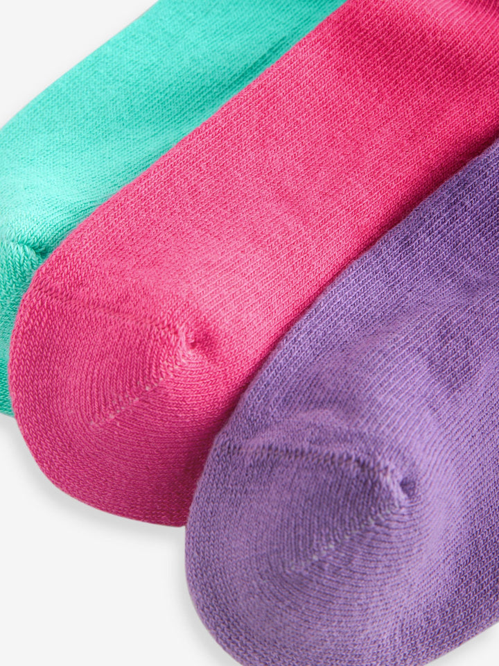 Pink, Purple and Teal Blue Character Regular Length 3 Pack Cotton Rich Cushioned Sole Ankle Socks