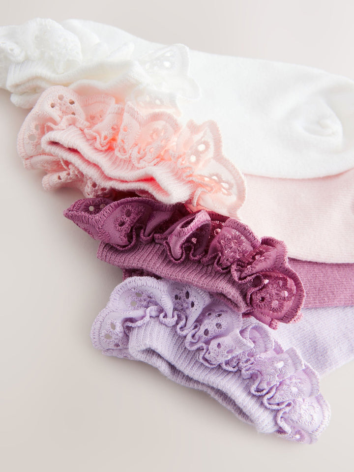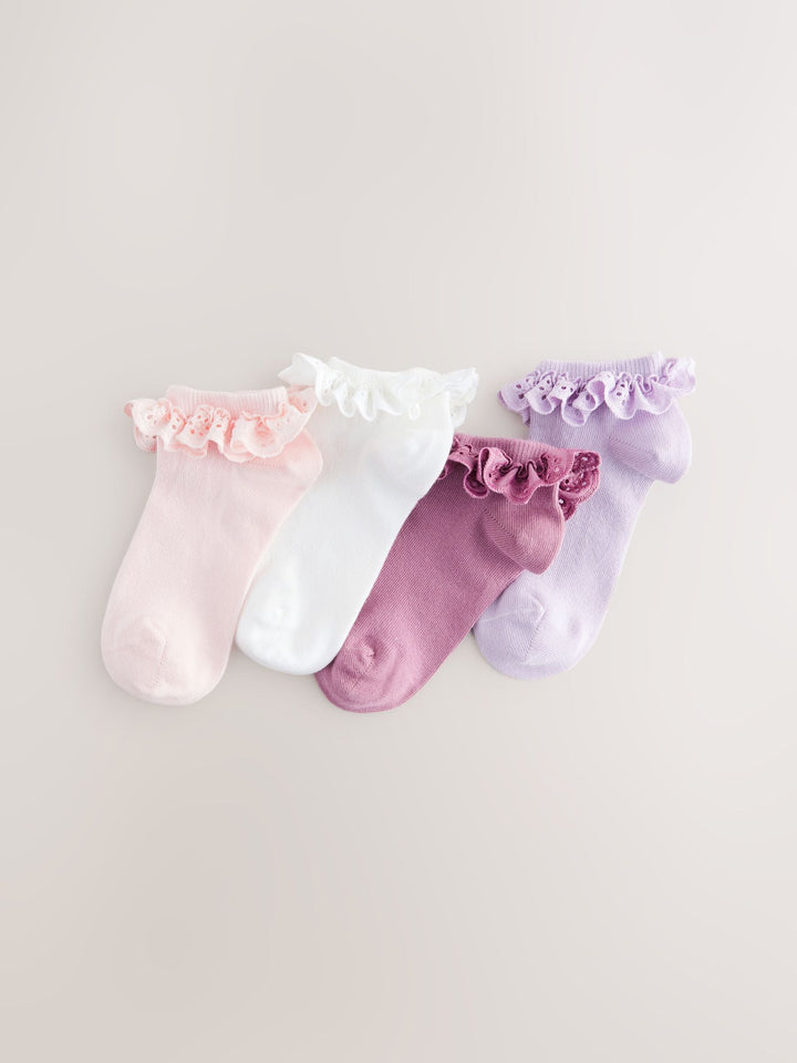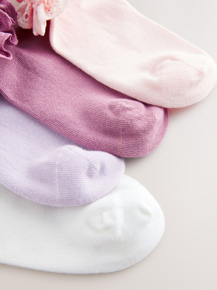 Pink. Purple And White 4 Pack Cotton Rich Ruffle Trainer Socks