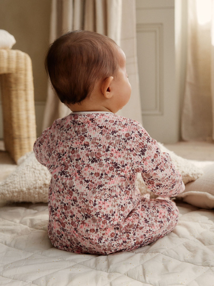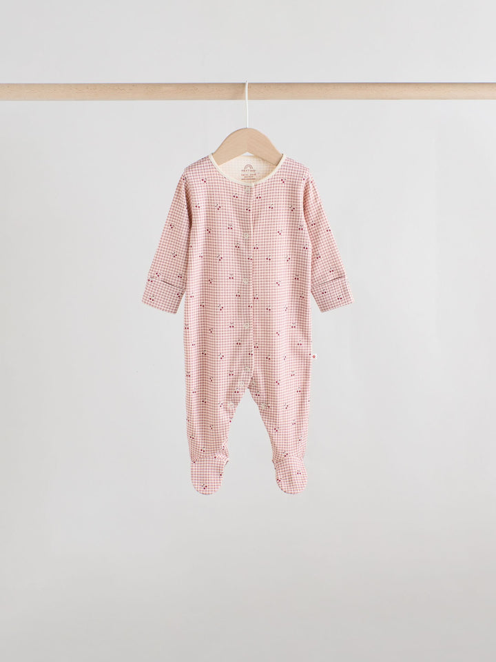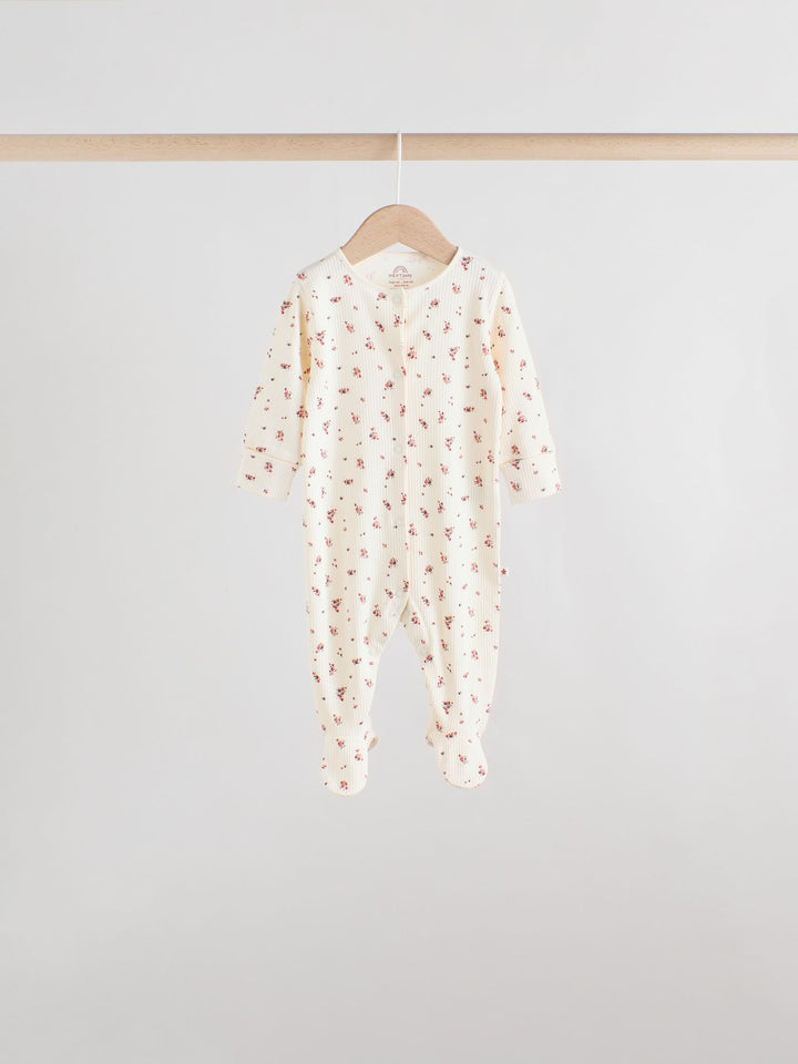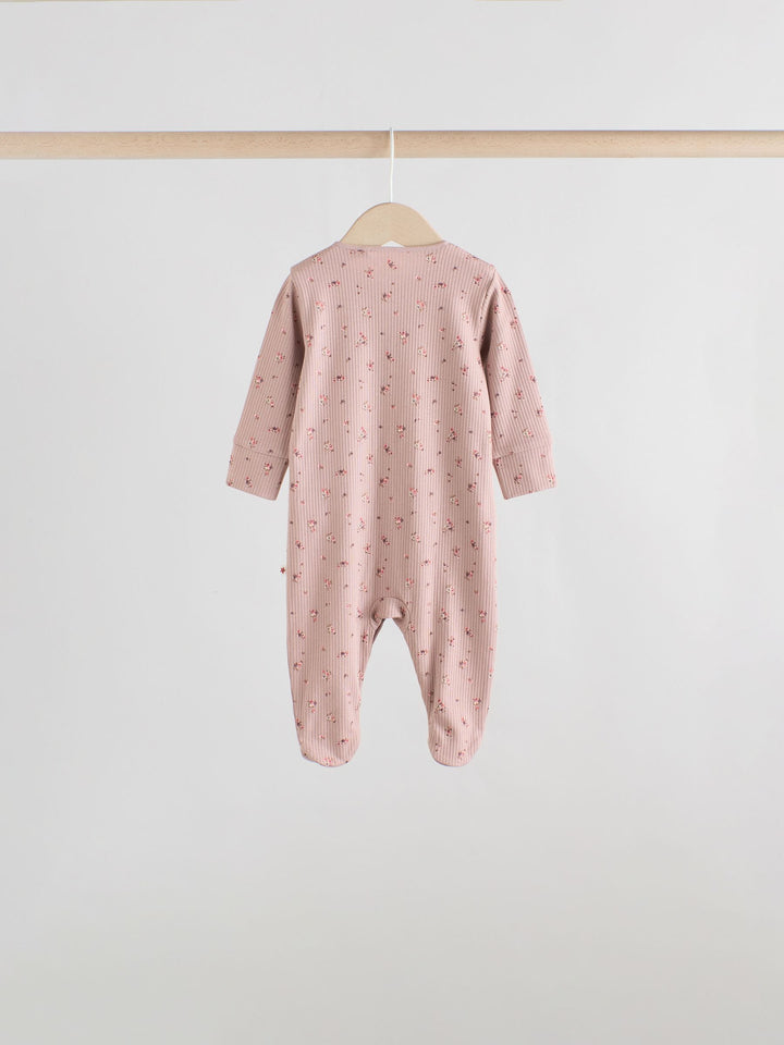 Pink/Rust Ditsy Floral Two Way Zip Baby Sleepsuits 3 Pack (0-2yrs)