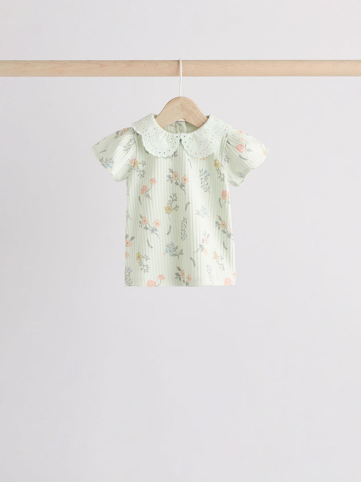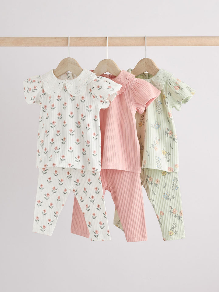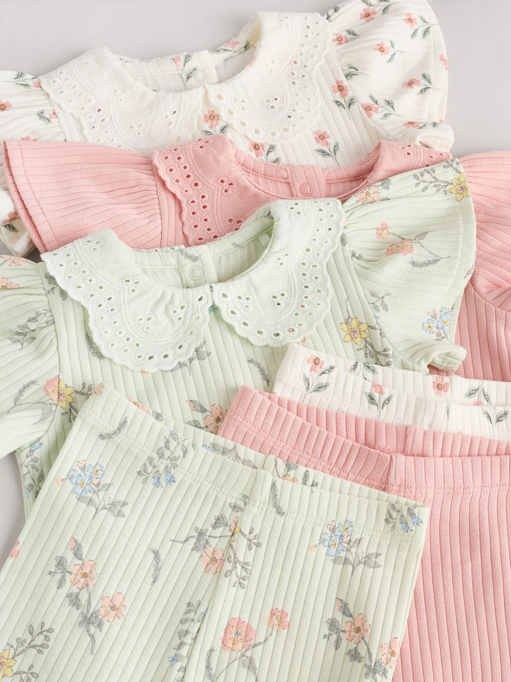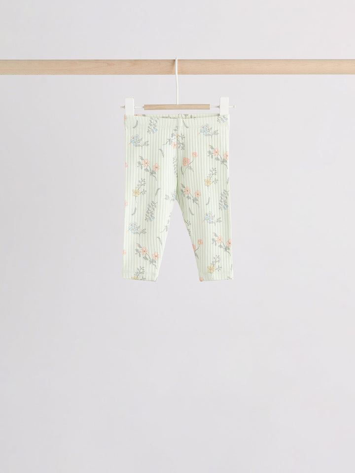 Pink/ Sage Green/ White Floral Printed Character Baby Tops and Leggings 6 Pack Set (0mths-3yrs)