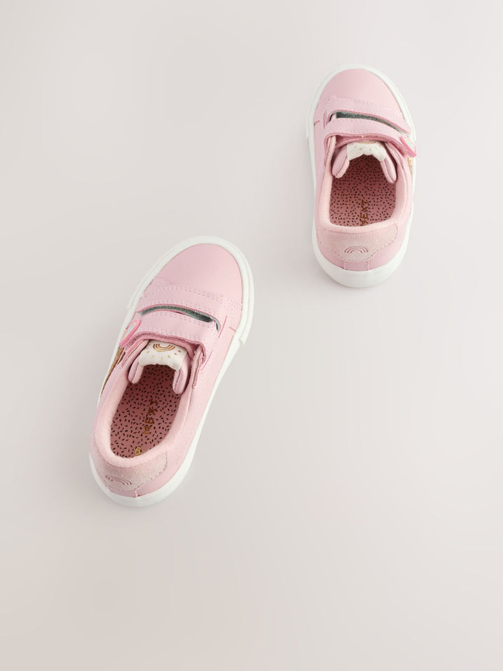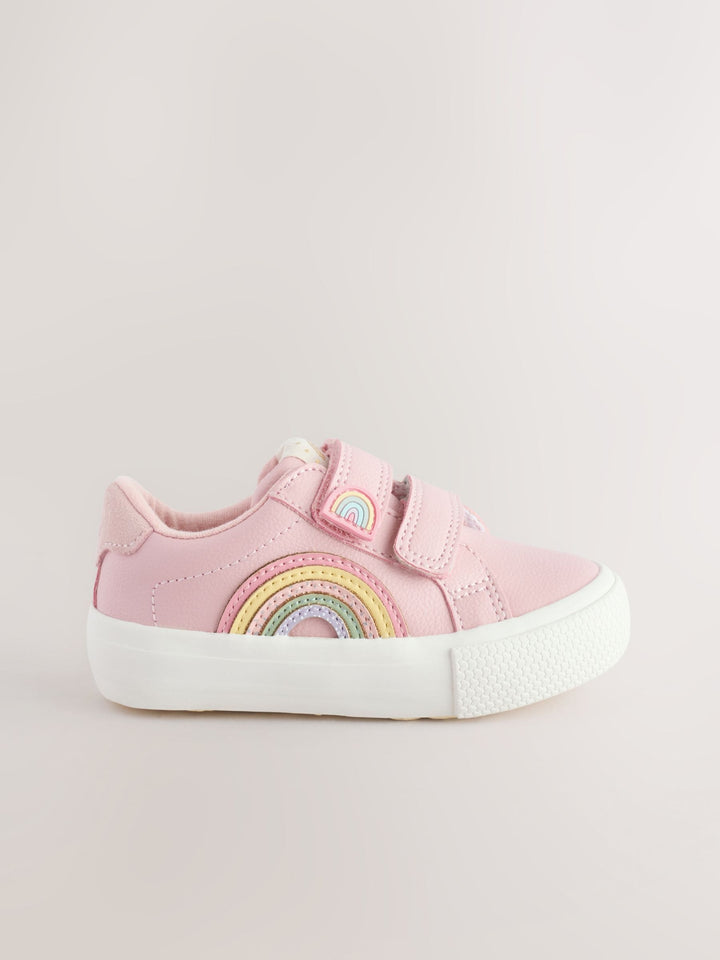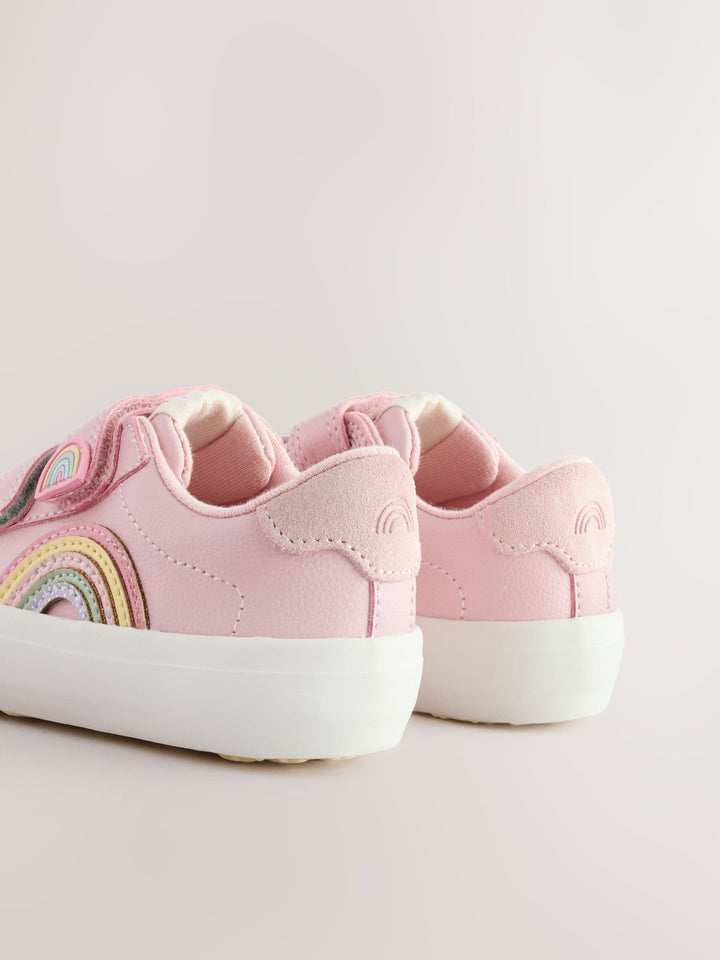 With a classic design and dual touch-fastened straps for easy wear, these pink trainers are perfect as an everyday option, featuring a faux leather upper with rainbow detailing, a round toe and a textile lining, finished with a slip resistant sole. Standard fit (F) Faux leather upper Round toe Touch fastening Textile lining Slip resistant sole Upper - Other Materials, Leather, Lining & Sock - Textile, Sole - Other Materials. Country of Origin: Vietnam