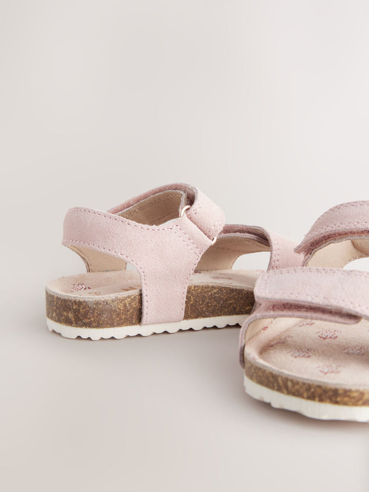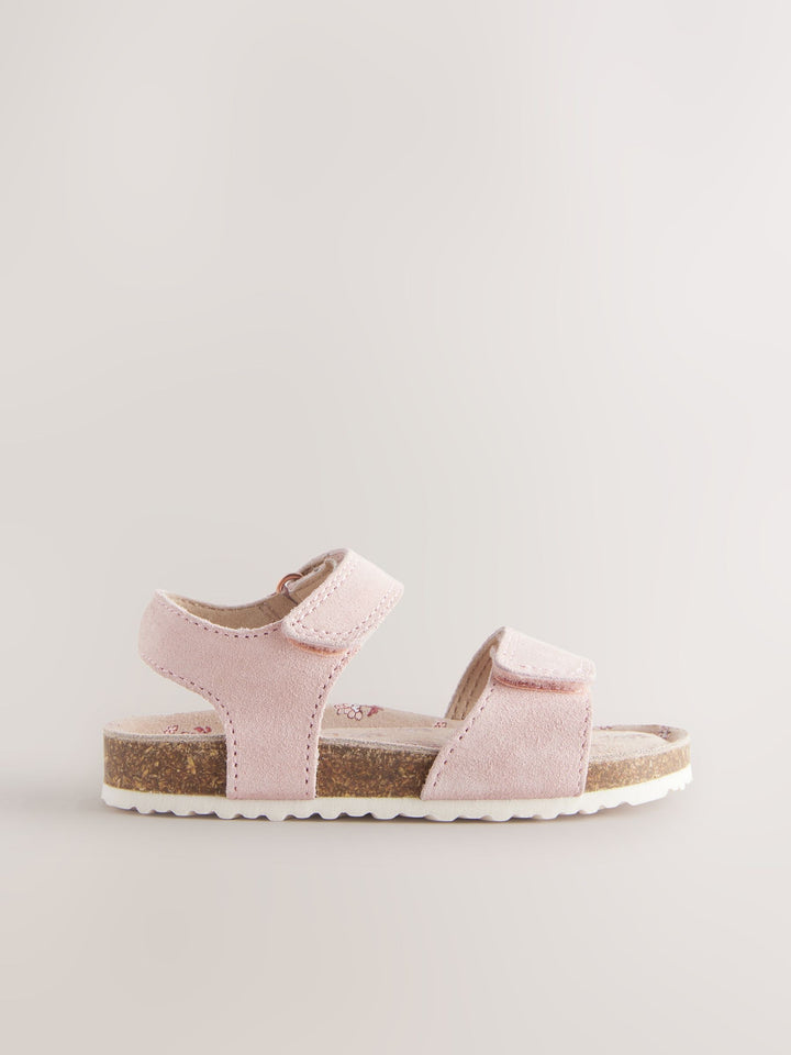 Pink Suede Wide Fit (G) Touch Fastening Corkbed Sandals