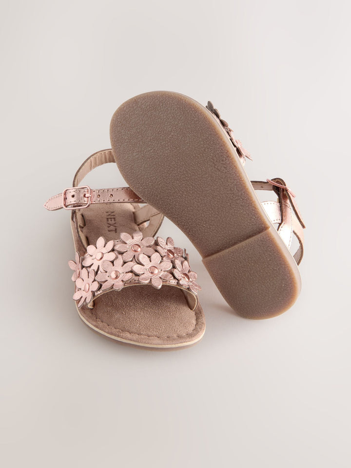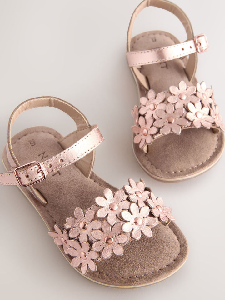 These pretty pink and tan summer sandals have a leather upper with floral detailing, an open toe and an adjustable ankle strap, a soft faux suede lining and a slip-resistant outsole. Leather upper 3D flowers Adjustable ankle strap Faux suede lining Slip-resistant outsole Upper - Leather, Lining & Sock - Other Materials, Leather, Sole - Other Materials. Country of Origin: India