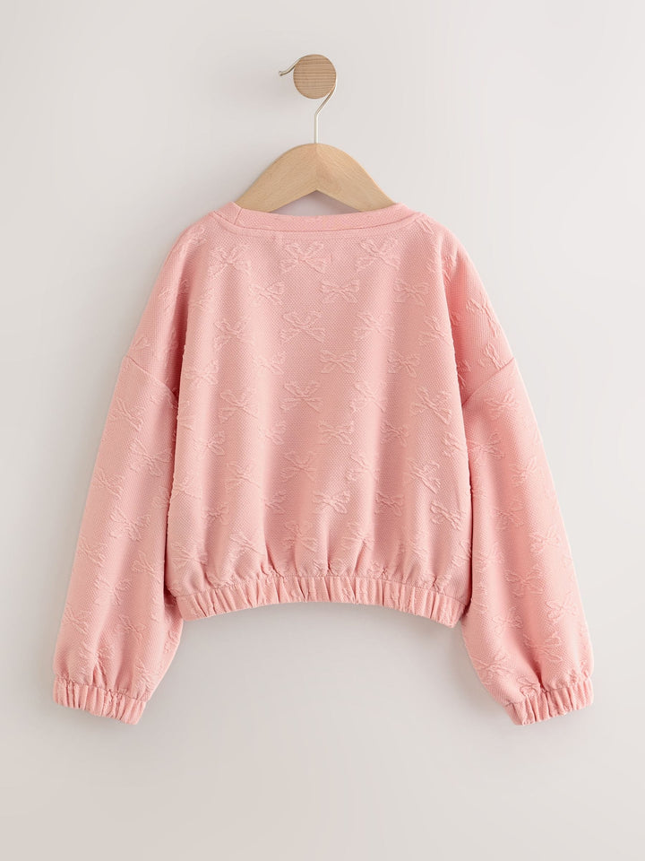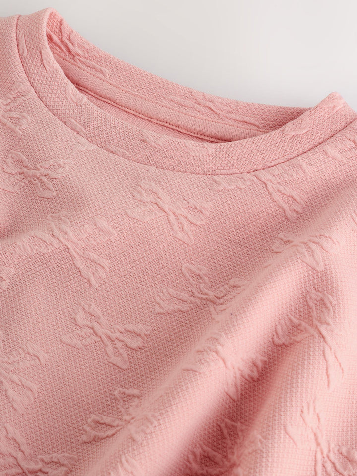 Pink Textured Bow Long Sleeve Top (3-16yrs)