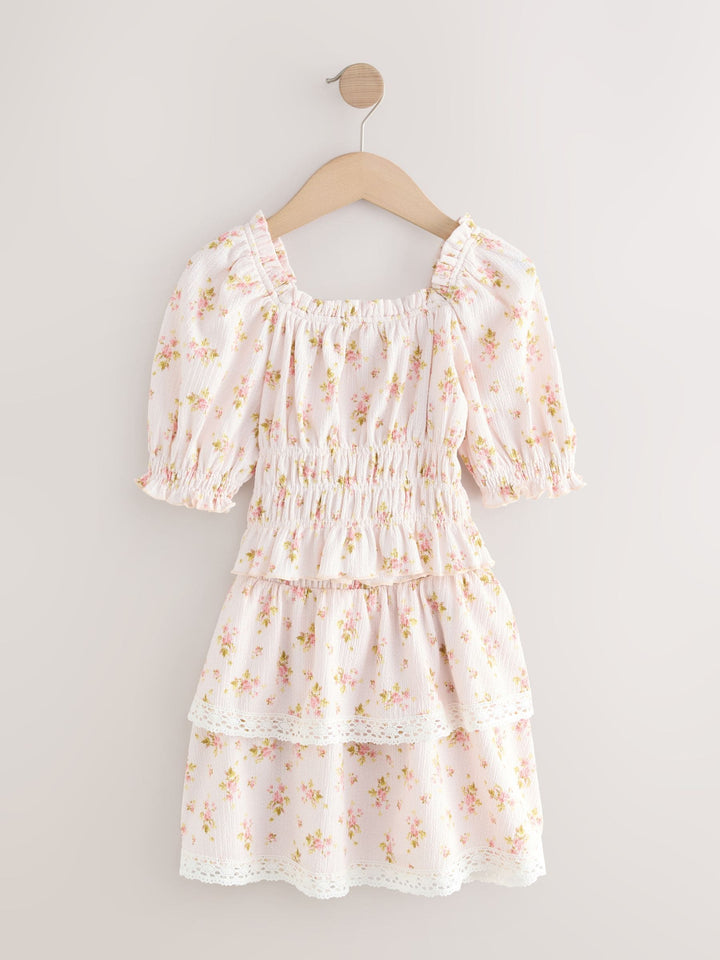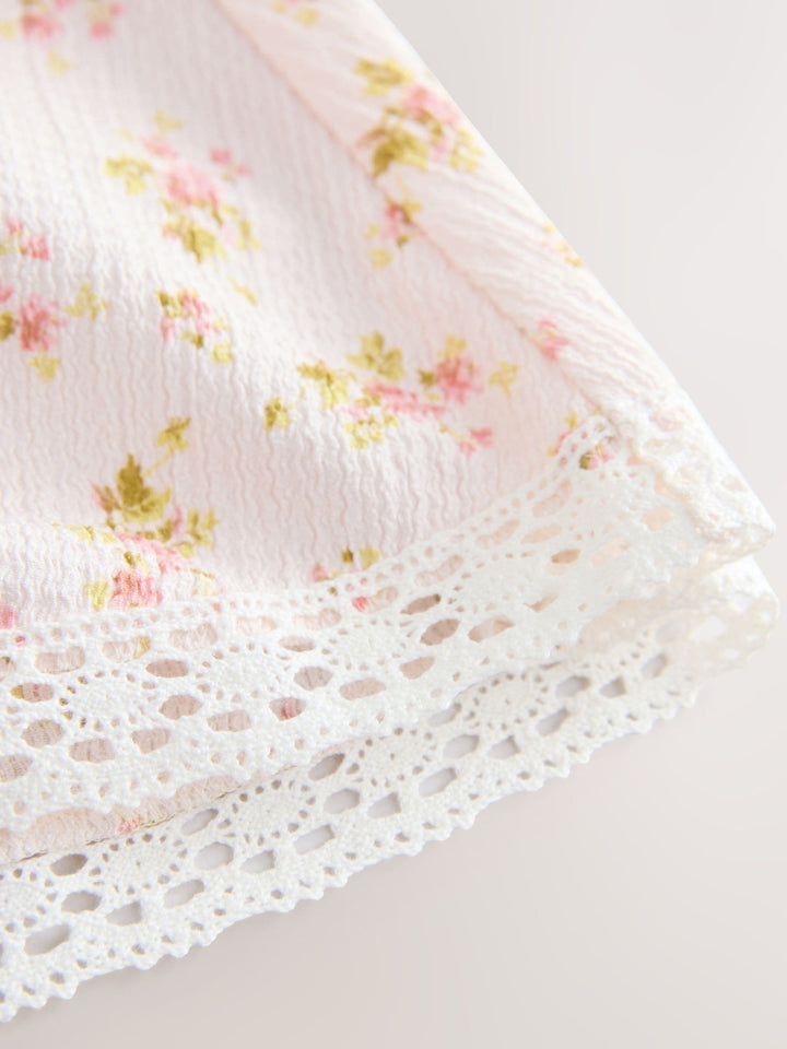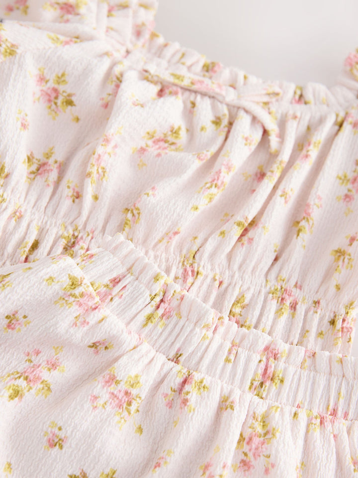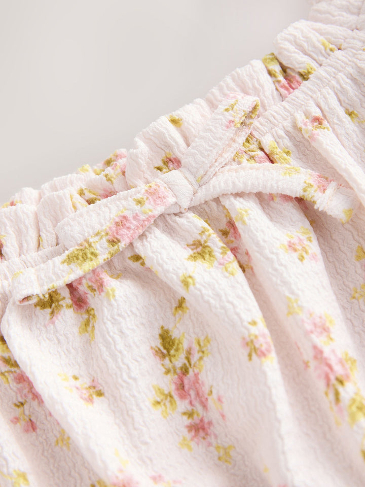 Our pink shirred bardot top and skirt set adds a boho feel to her look. In a crinkle texture fabric with a pretty floral print, this two piece set includes a bardot top with puff sleeves and a tiered skirt with frill detailing. Complete with bows and crochet detailing for a fine finish. 2 piece set Floral print Crinkle texture fabric Bardot top Tiered skirt Machine washable. Crop Top and Skirt 99% Recycled polyester, 1% Elastane. Country of Origin: Turkey
