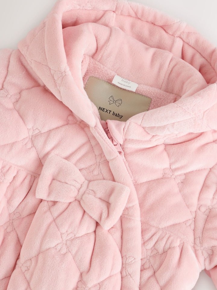Pink Velour Baby Quilted Pramsuit (0mths-2yrs)