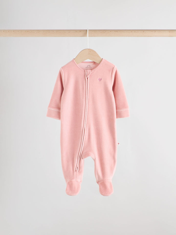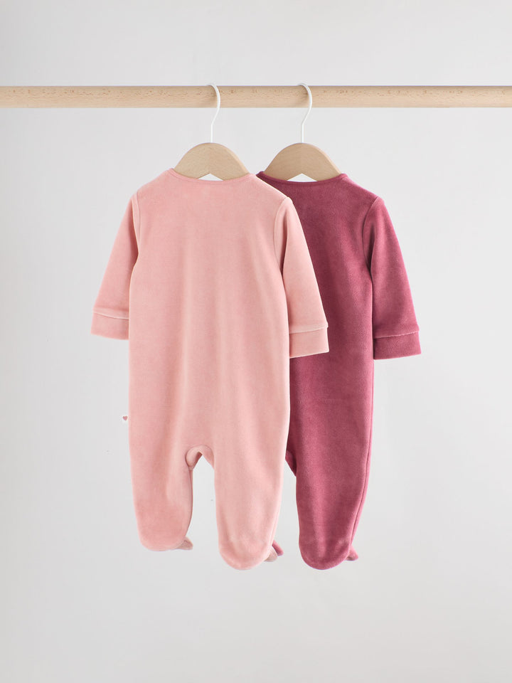 Pink Velour Baby Sleepsuits 2 Pack (0mths-2yrs)