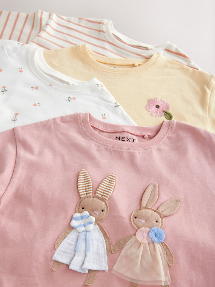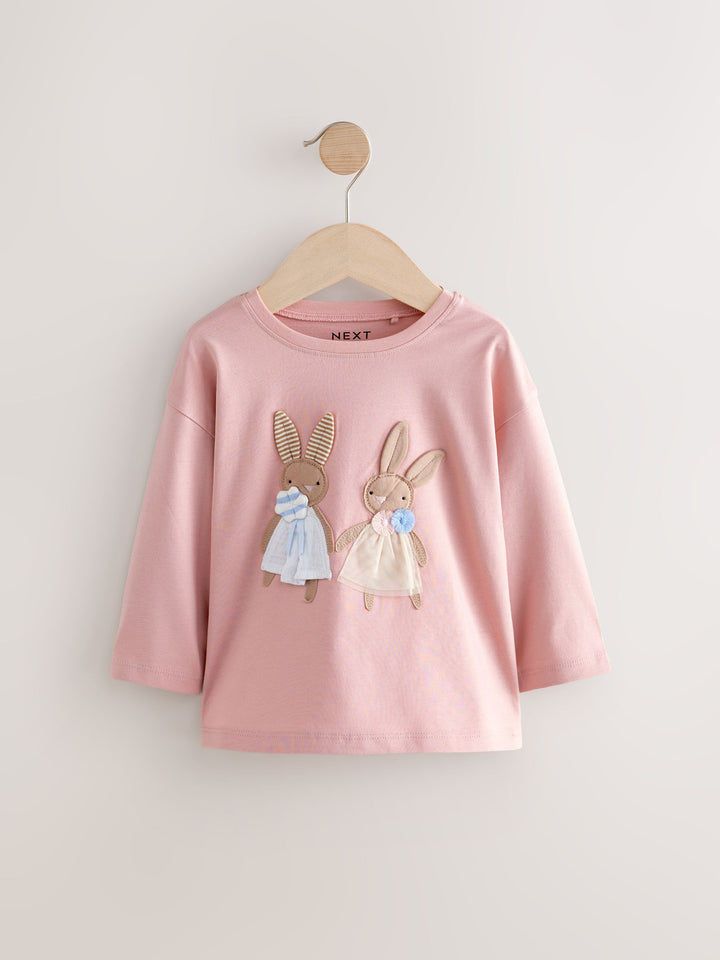 Pink/White 4 Pack Bunny Embroidered Long Sleeve T-Shirts (3mths-7yrs)