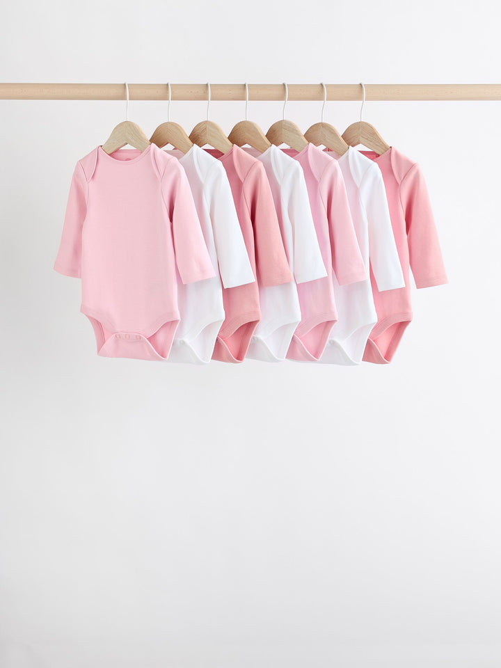 Pink/White 7 Pack 7 Pack Essential Long Sleeve Baby Bodysuits