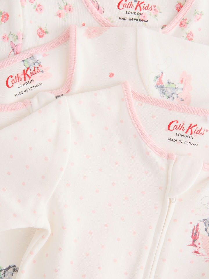 Pink/White Cath Kidston Floral Baby 100% Cotton Sleepsuits 3 Pack