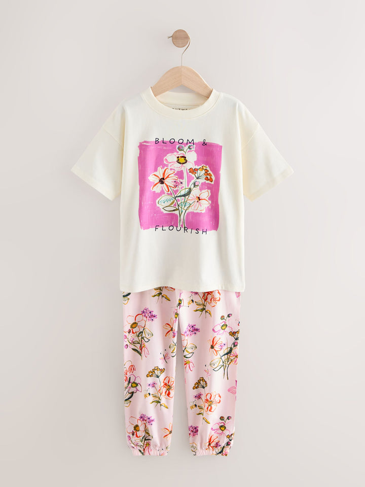 Pink/White Floral Print Jogger Pyjamas 2 Pack (3-16yrs)