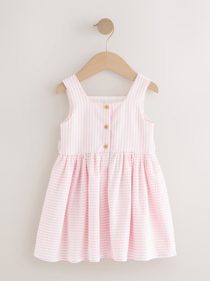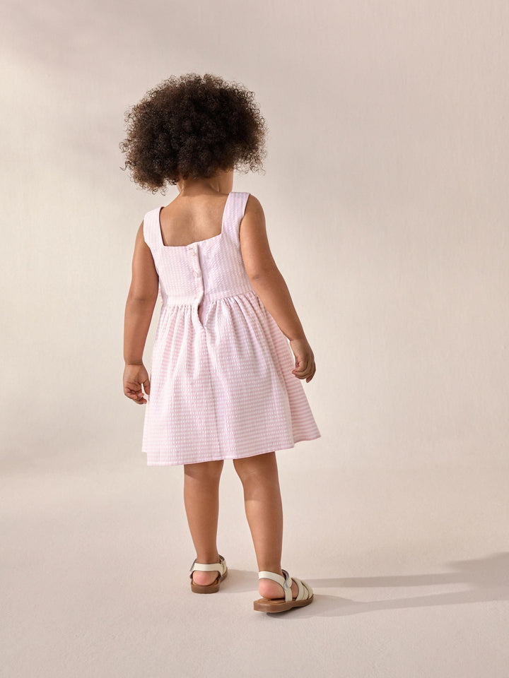 Our pink and white bow pom dress will elevate her party looks. In a lightweight fabric with an on trend bow detail, this pretty frock is complete with button-back fastening and fully lined. Viscose/cotton blend Stripe design Bow detailing Button-back fastening Main 35% Viscose, 34% Cotton, 28% Polyester, 3% Elastane. Lining 100% Cotton. Mesh 100% Polyester. Country of Origin: Turkey