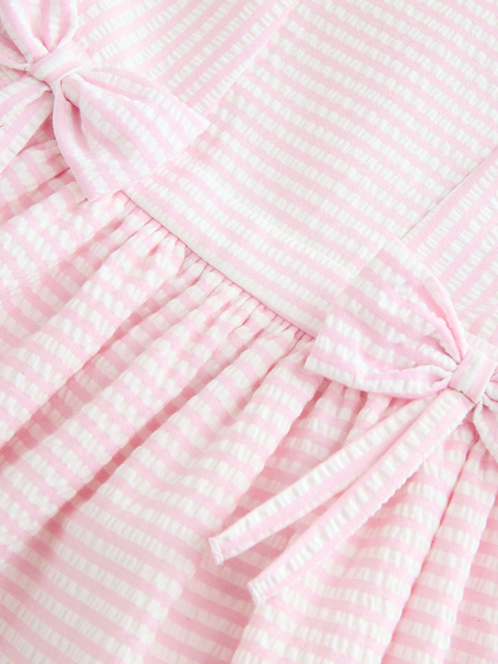 Pink/White Stripe Bow Detail Prom Dress (3mths-8yrs)