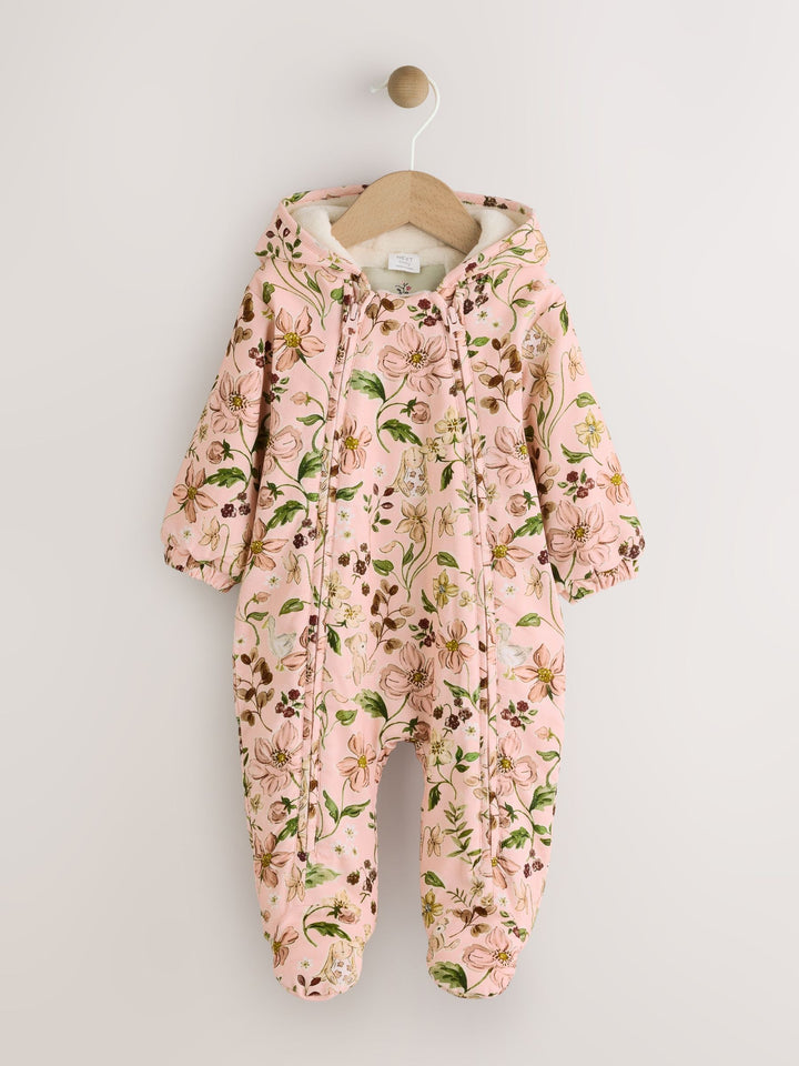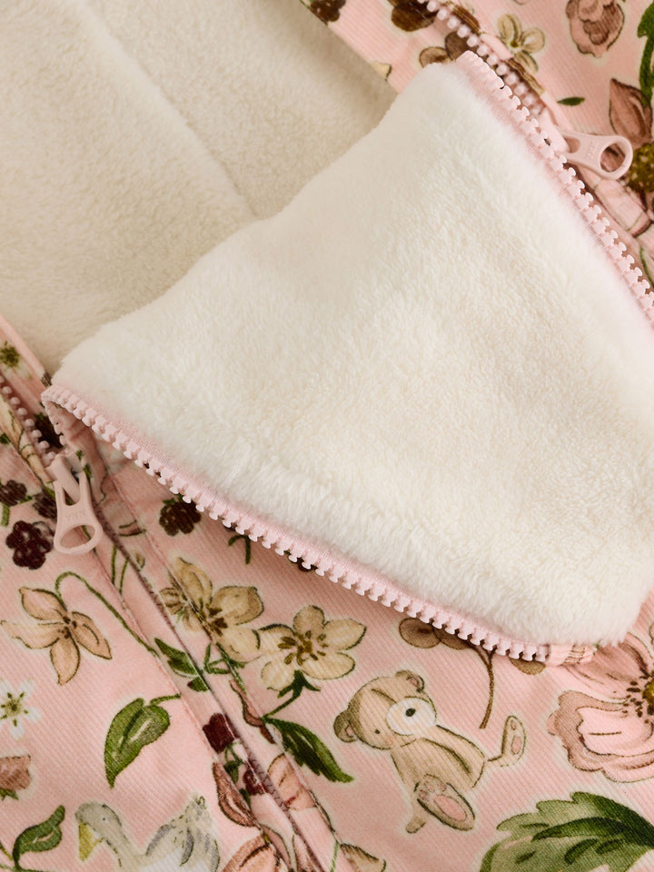 Pink Woodland Printed Baby Cord Hooded Pramsuit (0mths-2yrs)