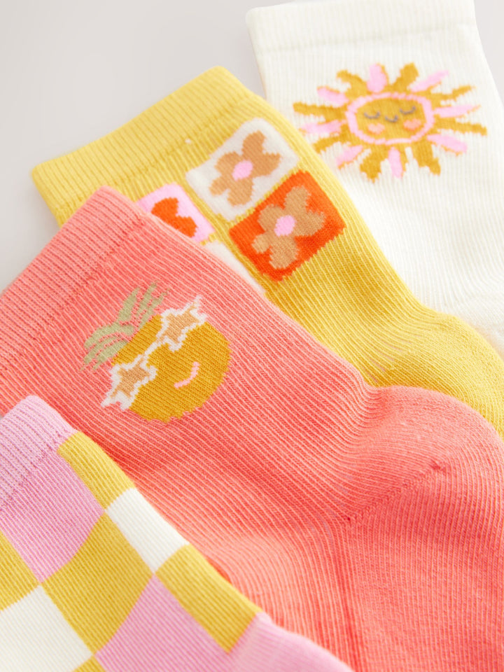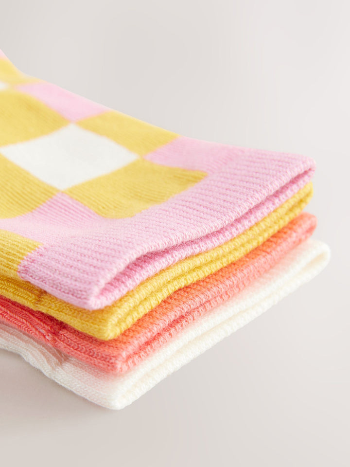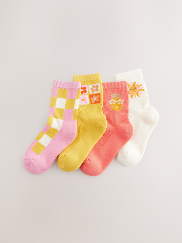 Pink/Yellow 4 Pack Cotton Rich Ankle Socks