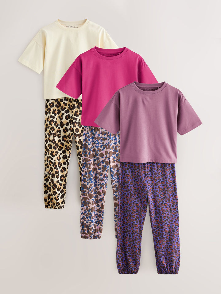 Stock up on their sleepwear essentials, with this 3-pack of pyjamas feature bright and colourful animal-print designs, across short sleeve t-shirts with a crewneck collar and full-length bottoms with an elasticated waistband, finished in 100% cotton. 3-pack 100% cotton Regular fit Animal prints Machine washable. 3 x Pyjama Top and 3 x Pyjama Bottom 100% Cotton. Country of Origin: Bangladesh Warning: Keep away from fire and flames.