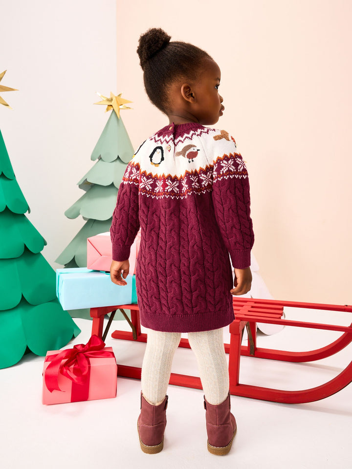 Plum Christmas Fairisle Pattern Character Jumper Dress (3mths-10yrs)