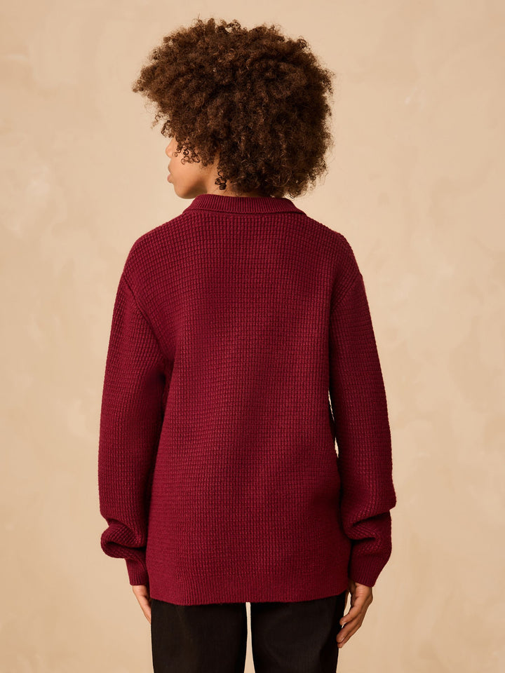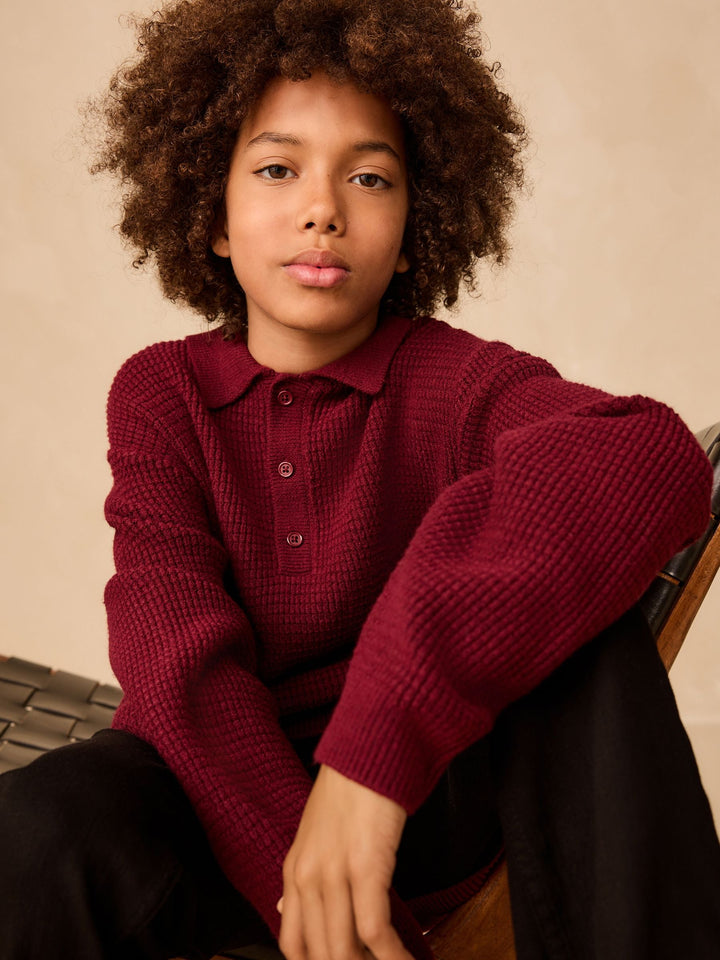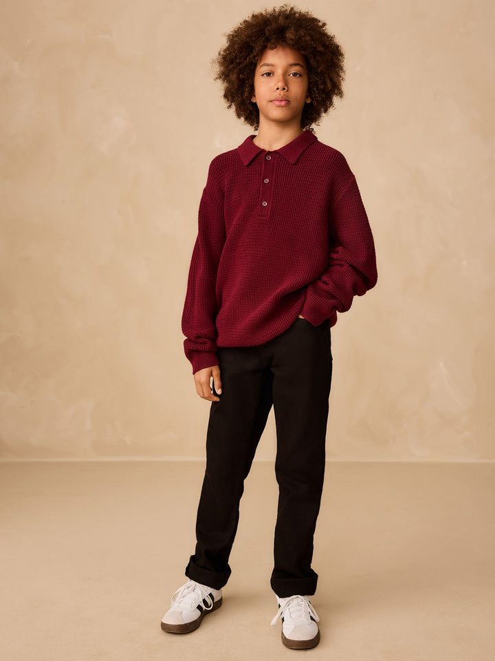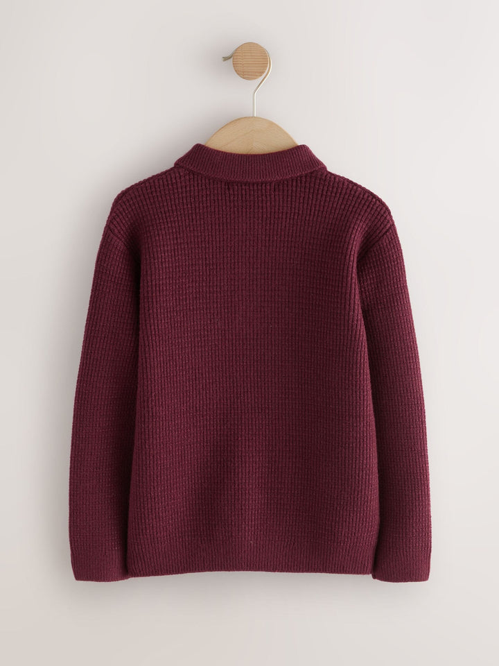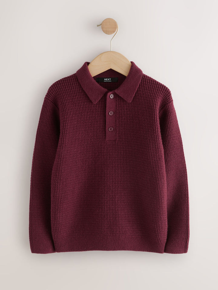 Plum Purple Knitted Button Neck Polo Shirt (3-16yrs)