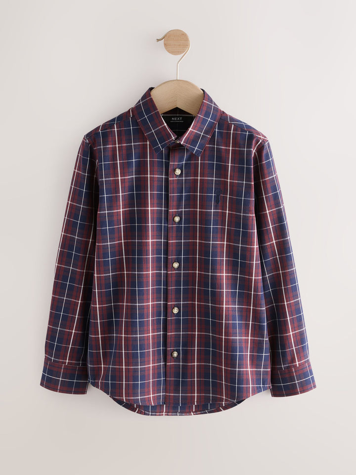 Plum Purple Long Sleeve Cotton Check Shirt (3-16yrs)