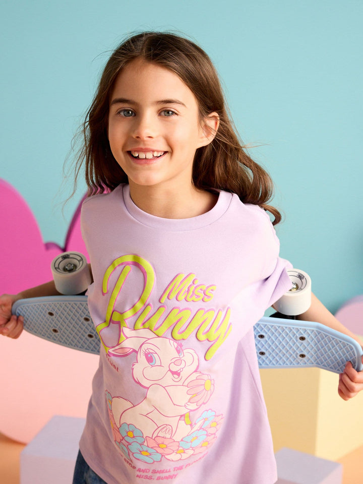 This purple Bambi Miss Bunny T-shirt is a fun and comfortable piece for day-to-day wear. Crafted from supersoft cotton, it features a playful puff print of Bambi's Miss Bunny. The oversized fit offers a relaxed feel, perfect for a casual, comfortable look. Oversized fit Miss Bunny design Supersoft cotton Puff print Machine washable. 100% Cotton. Country of Origin: Turkey