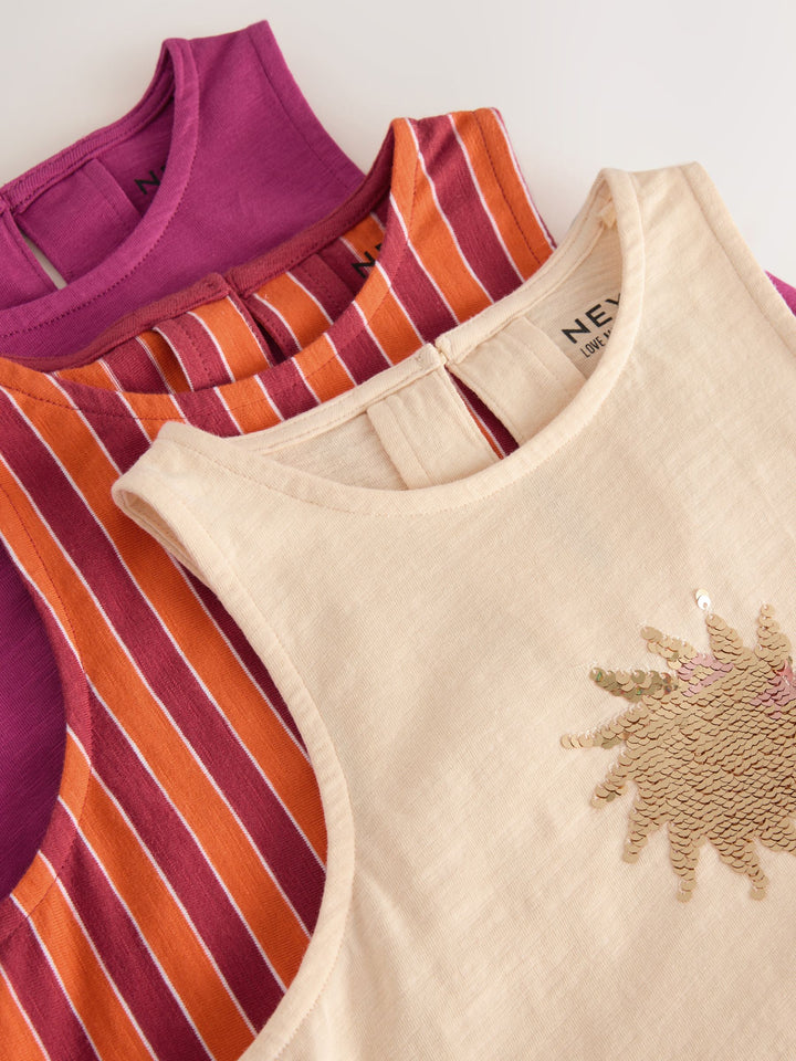 With peplum and frill detailing, this vest top is both comfortable and feminine, cut to a loose fit with a slub-style cotton fabric and sequin detailing for that added sparkle. Loose fit 100% cotton Frill hem Slub-style texture Sequin detail Machine washable. 3 x Vest 100% Cotton. Country of Origin: Bangladesh