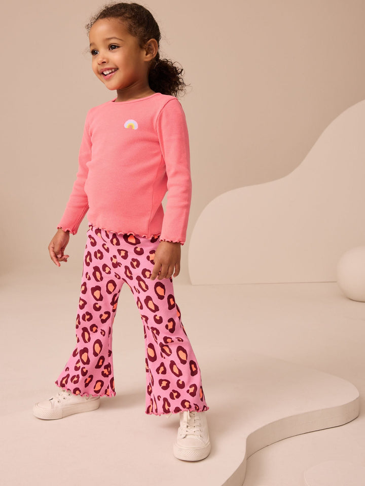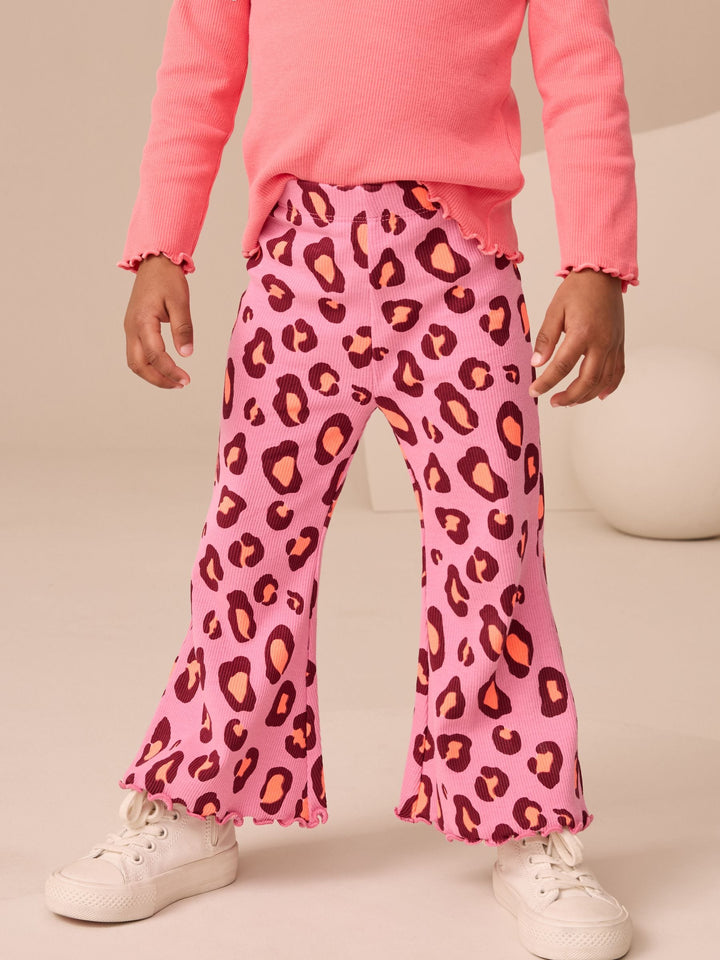 What's not to love about our girl's flare leggings. Made from pure cotton with added stretch, these flared leggings are made with a ribbed texture and complete with a lettuce hem trim for added fun. Ditsy print Ribbed fabric Lettuce hem Machine washable. 95% Cotton, 5% Elastane. Country of Origin: Bangladesh