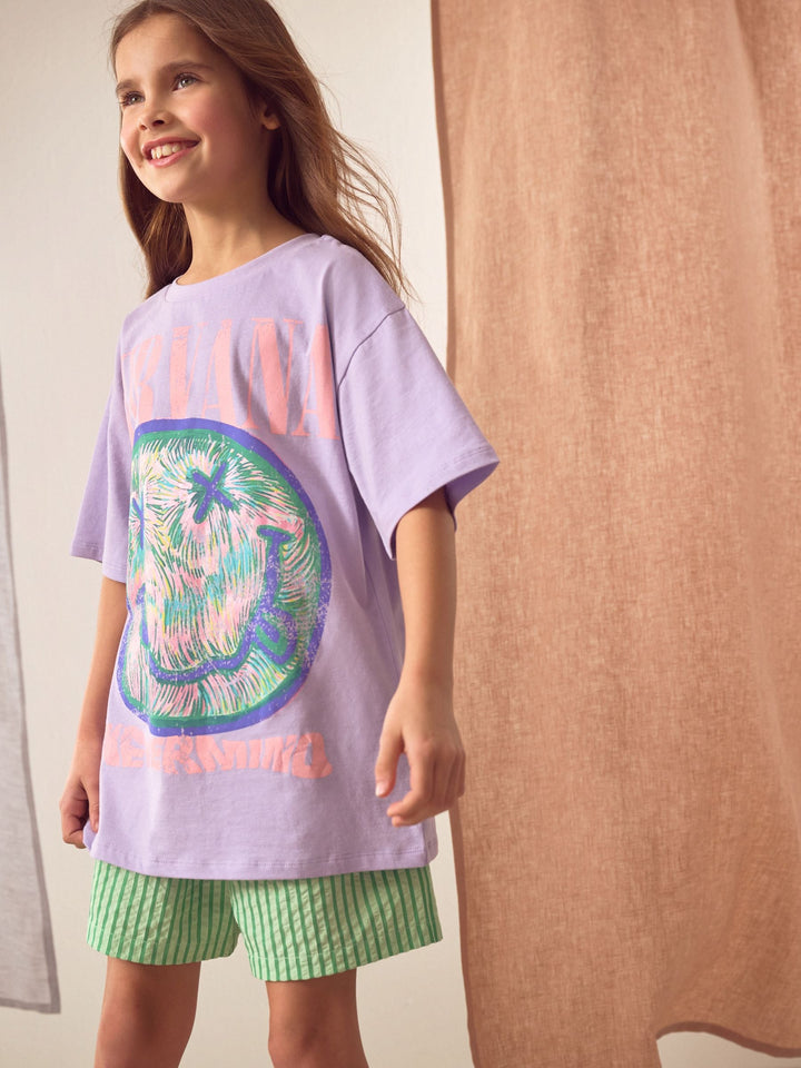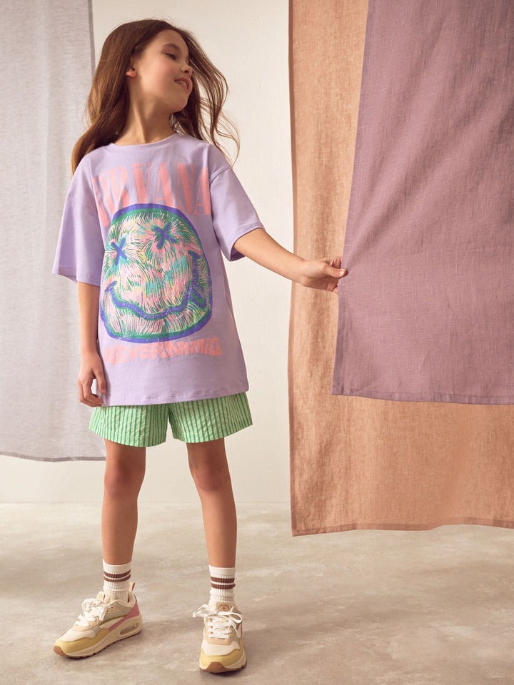 Our collection of kids officially licensed Nirvana t-shirts are perfect for any rockstar-in-training, made from pure supersoft cotton and cut to a relaxed fit, in a selection of colours and graphics prints, finished with a crewneck collar. Relaxed fit 100% cotton Licensed Nirvana graphics Crewneck collar Machine washable. 100% Cotton. Country of Origin: Bangladesh