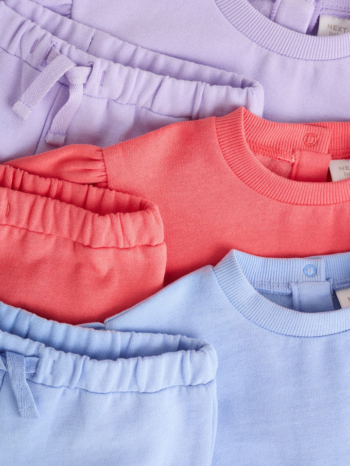 Purple/ Pink/ Blue Baby Sweatshirt & Joggers 6 Piece Set (0mths-2yrs)