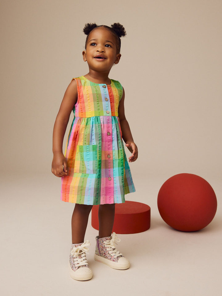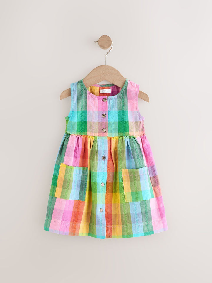 Rainbow Check Sleeveless Pocket Summer Dress (3mths-8yrs)