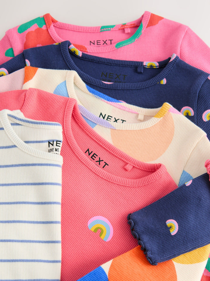 Rainbow Spot Long Sleeve Rib Tops 5 Pack (3mths-7yrs)