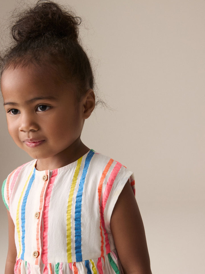 Rainbow Stripe Button Through Summer Dress (3mths-10yrs)