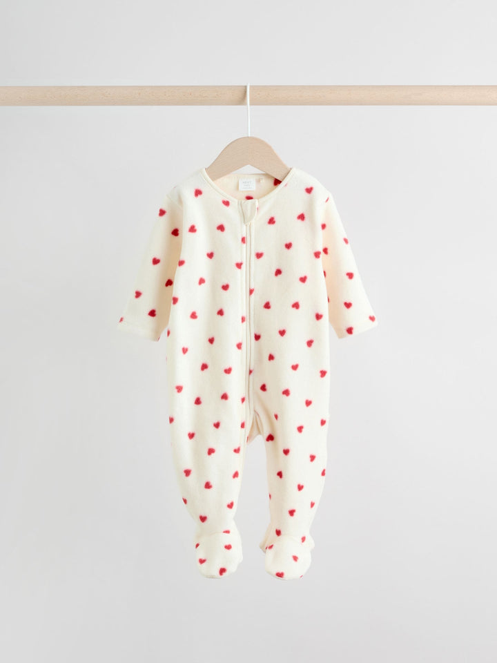 Red 2 Pack Micro Fleece Two Way Zip Baby Sleepsuits
