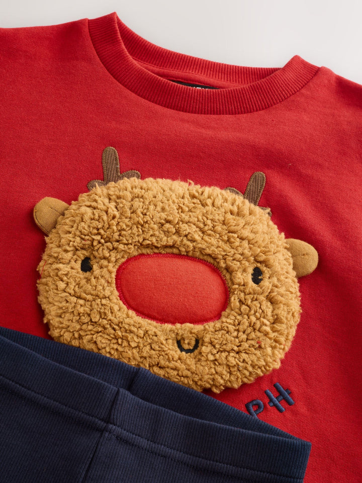 Red Boucle Rudolph Christmas Leggings and Crew Set (3mths-7yrs)
