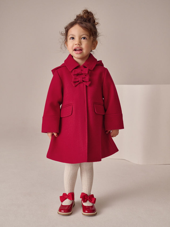 Red Bow Detail Hooded Coat with Wool (3mths-10yrs)