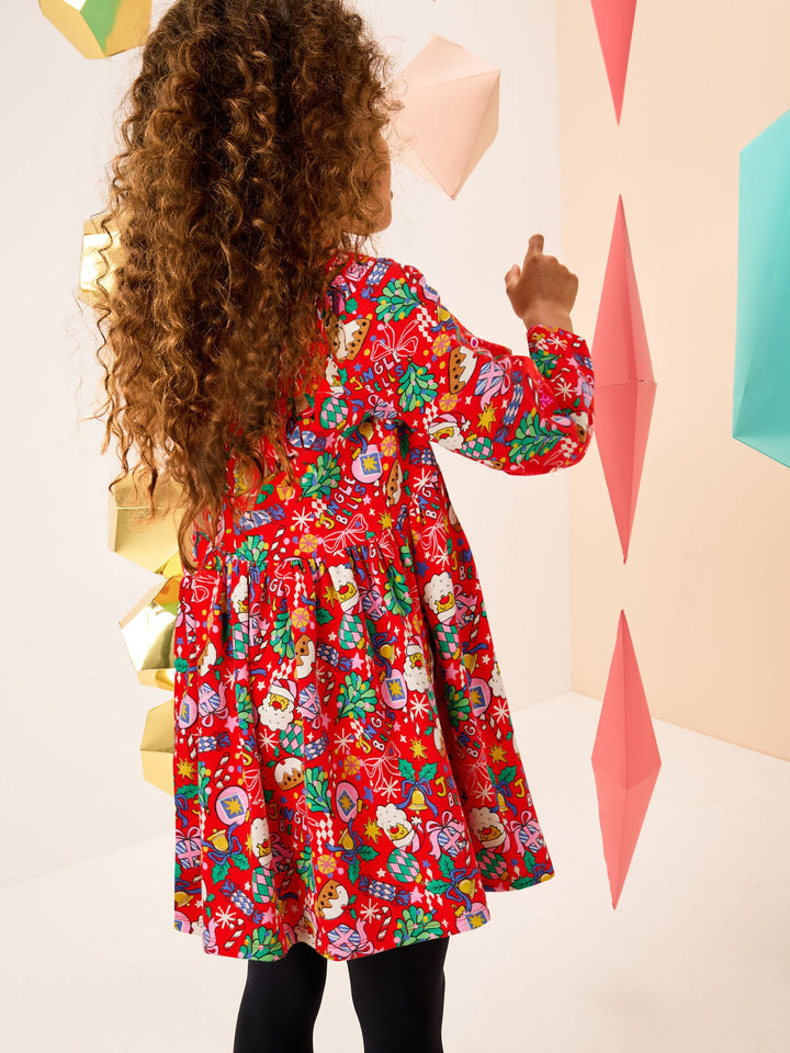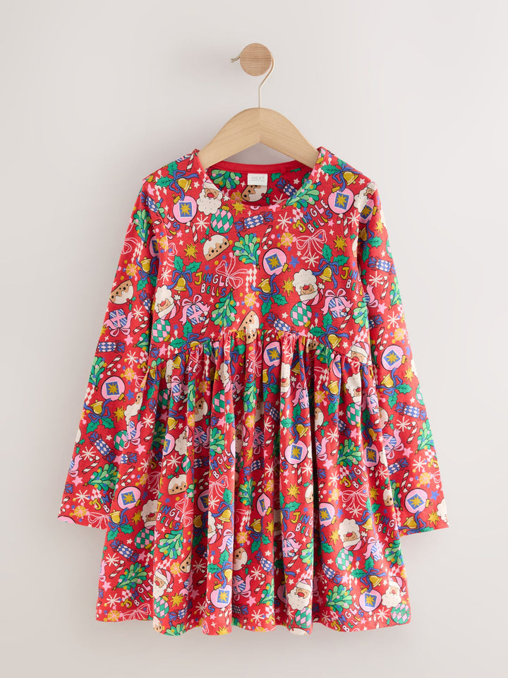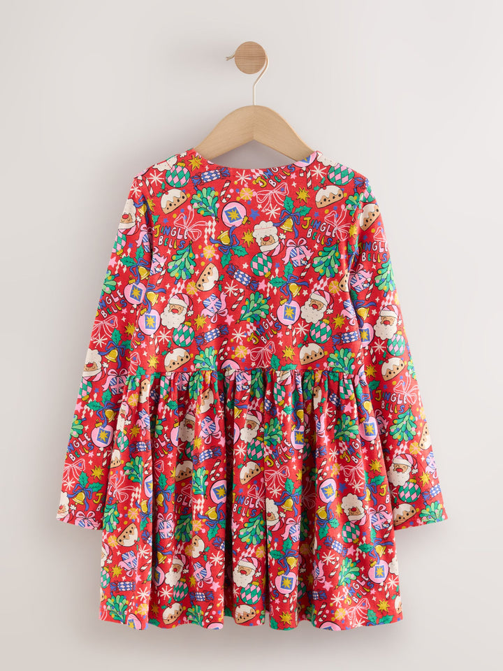Red Christmas Character Long Sleeve Jersey Dress (3-16yrs)
