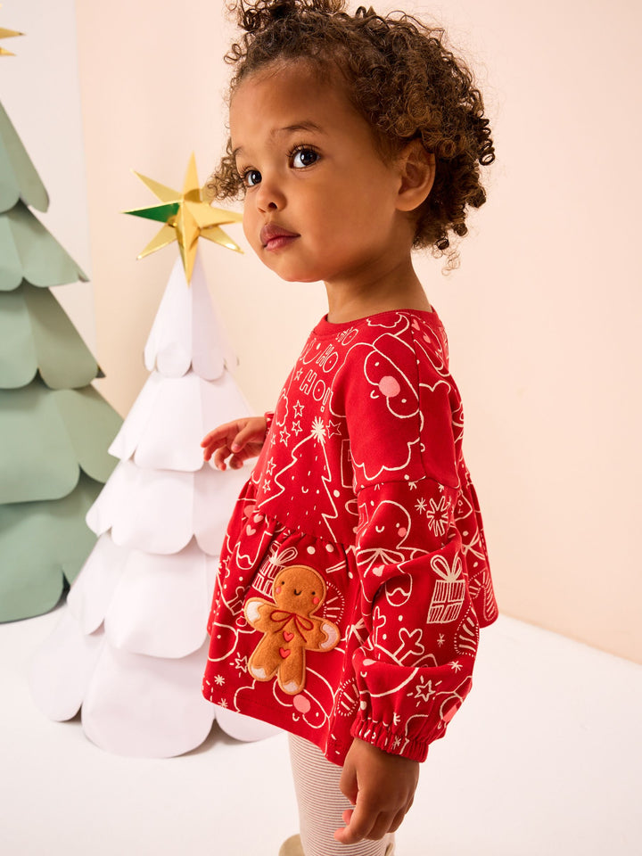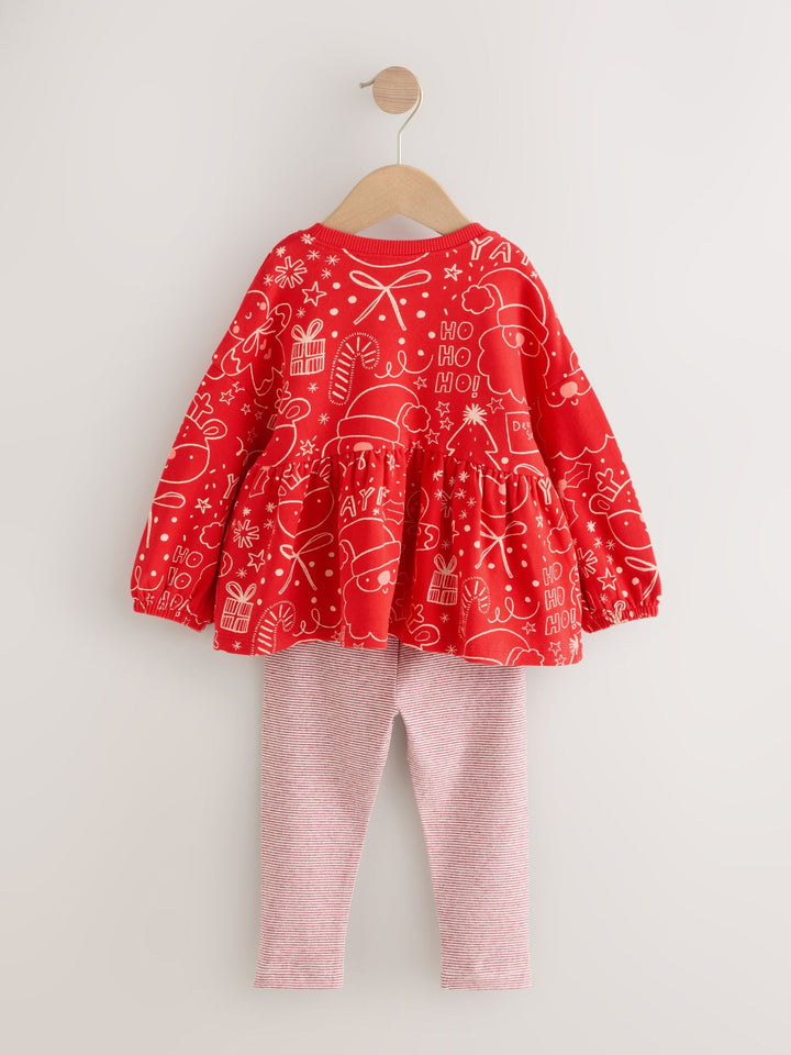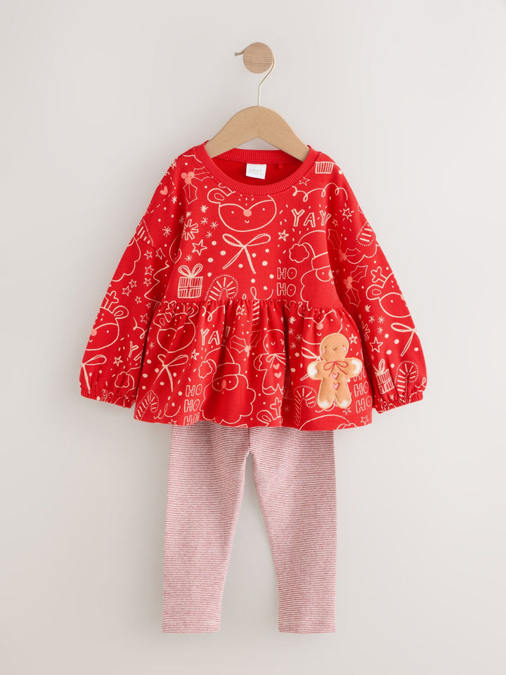Red Christmas Gingerbread Long Sleeve Peplum Top and Leggings Set (3mths-7yrs)