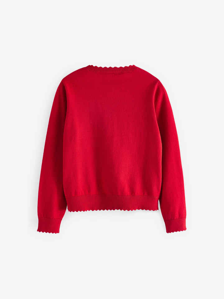 Red Cotton Rich Scalloped Edge School Cardigan (3-16yrs)