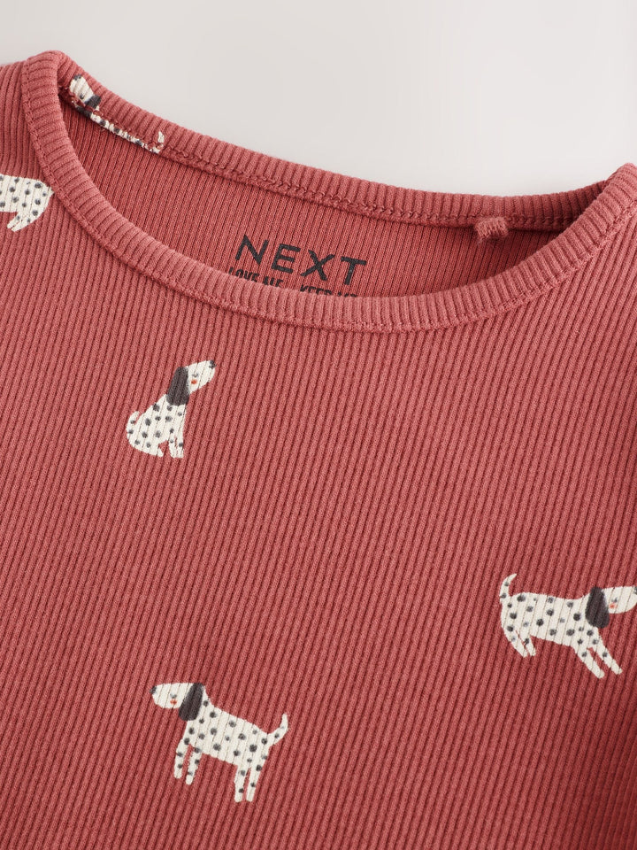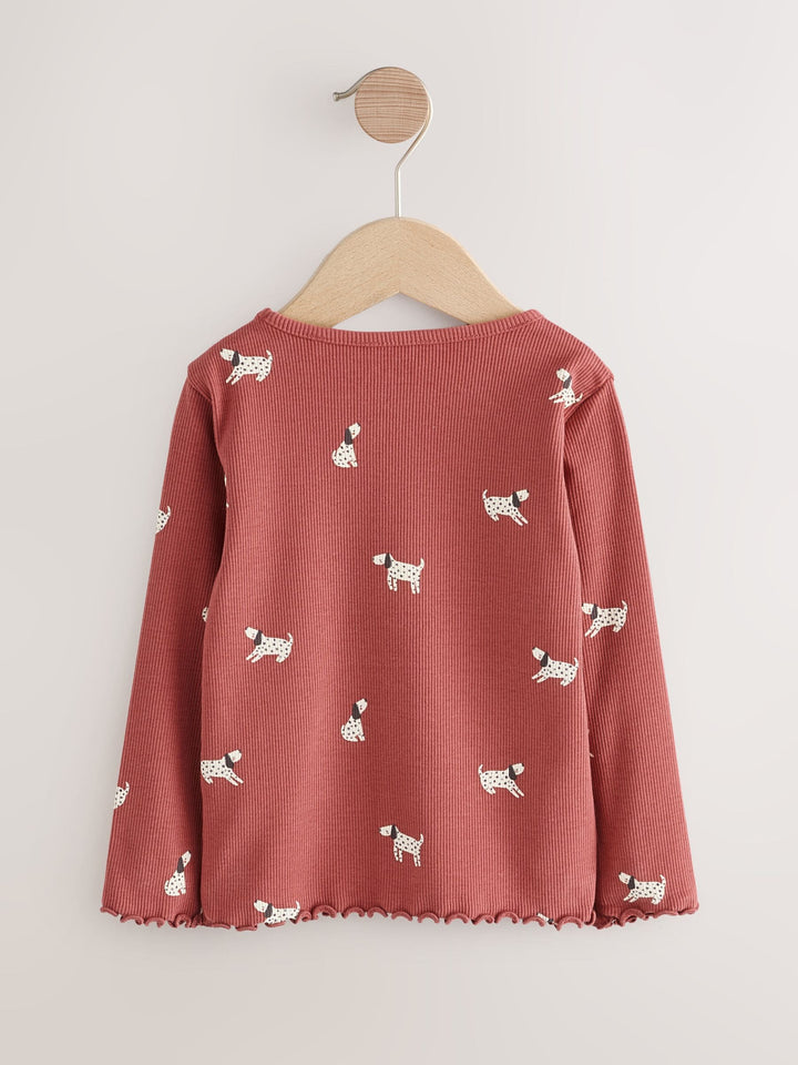 Add some fun to their everyday staples, with this long sleeve rib t-shirt, available in a selection of bright colours and prints, set against a cotton-rich base with added stretch. The t-shirt is finished with a ribbed crewneck collar and a ruffle trim the sleeve cuffs and hem. Cotton-rich blend Long sleeves Crewneck collar Ruffle trim Machine washable. 95% Cotton, 5% Elastane. Country of Origin: Bangladesh
