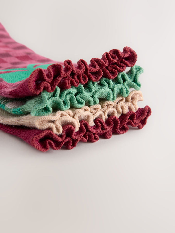 Red/Green and Cream Cotton Rich Christmas Character Ankle Socks 4 Pack