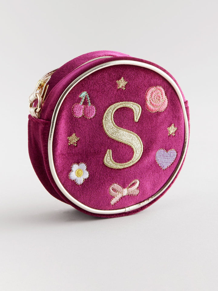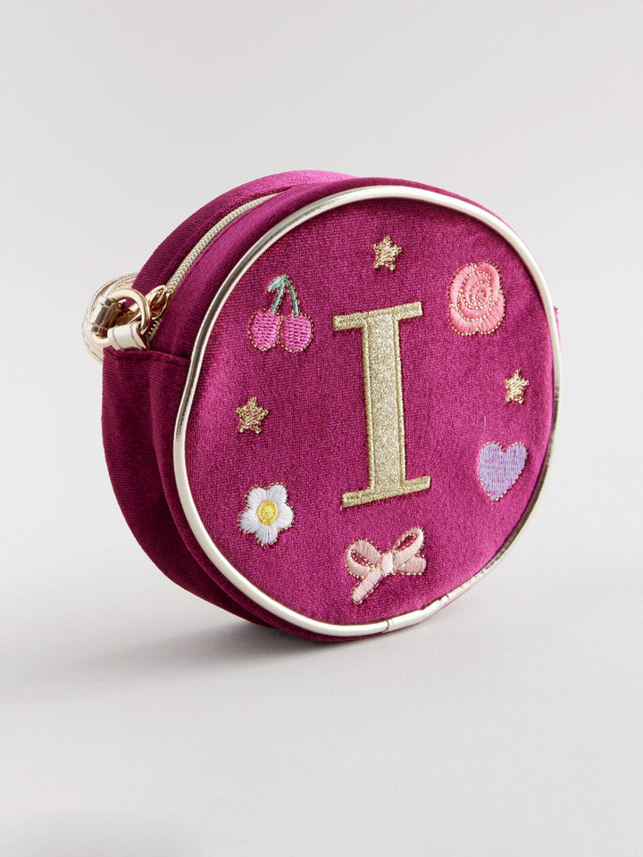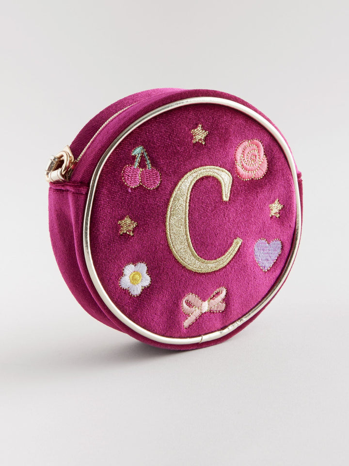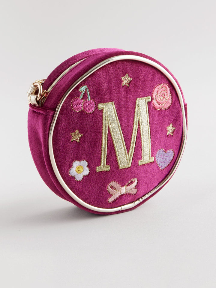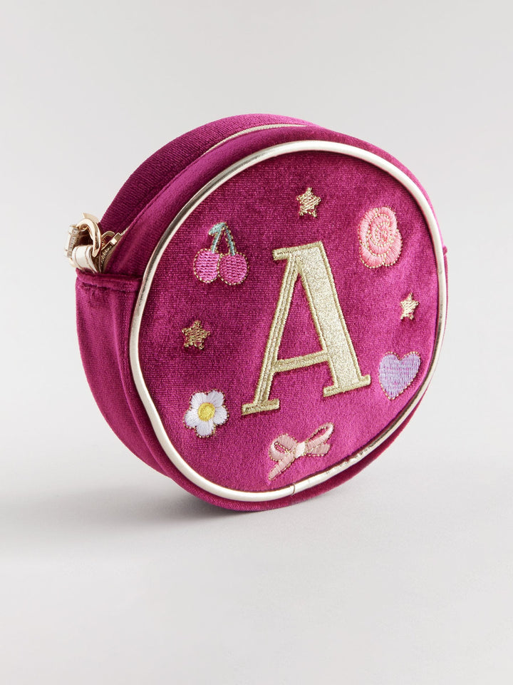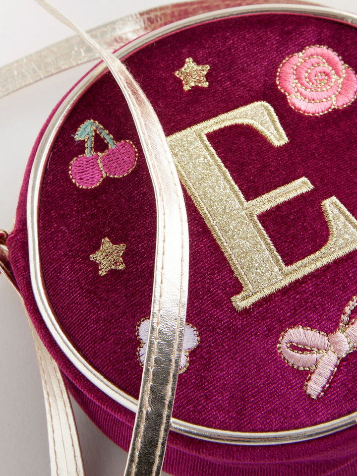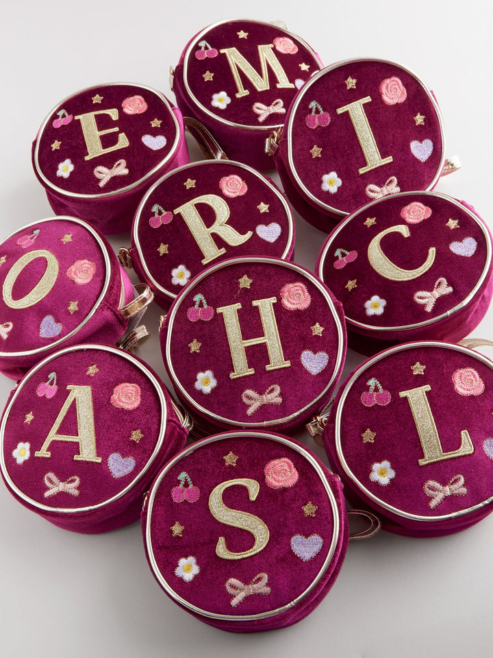 This cute mini-bag is available in a selection of different initials embossed to the front with embroidered detailing, set against a velvet fabric with a zippered compartment and a shoulder strap. Velvet fabric Embroidered initial Zip fastening Shoulder strap Height 14cm Width 14cm Depth 4cm 100% Polyester. Country of Origin: China